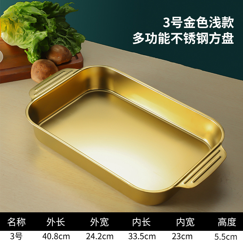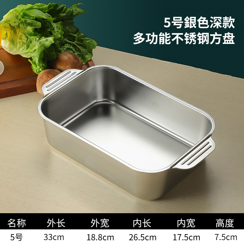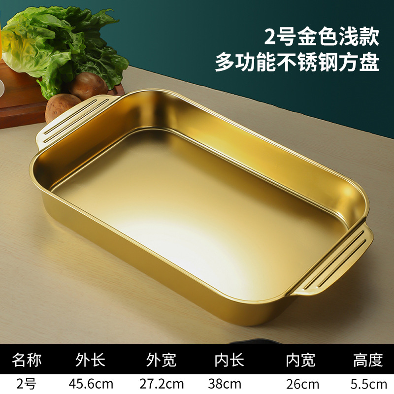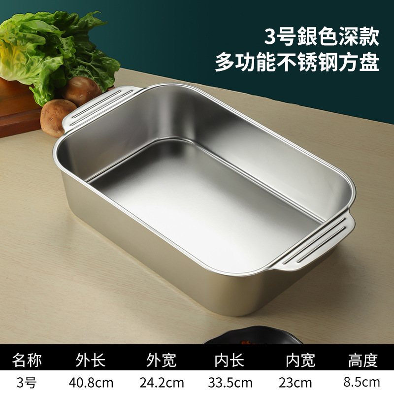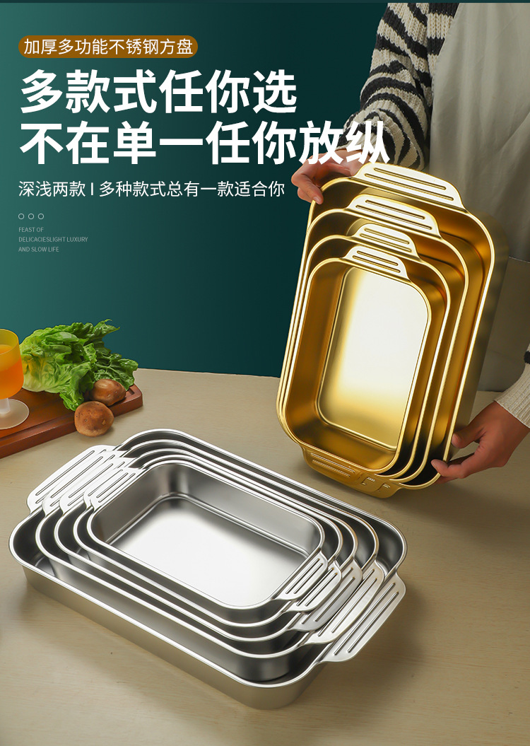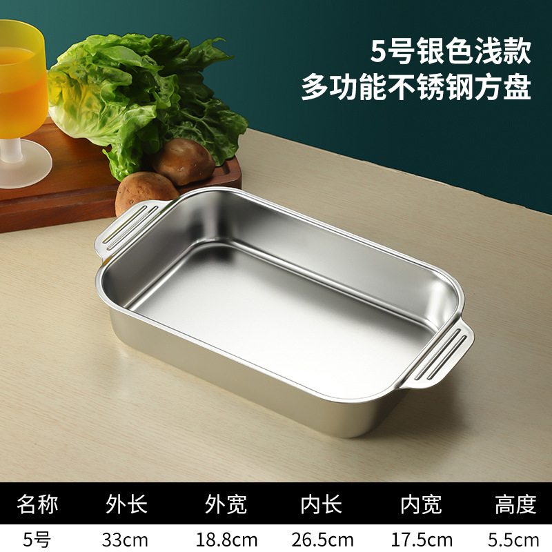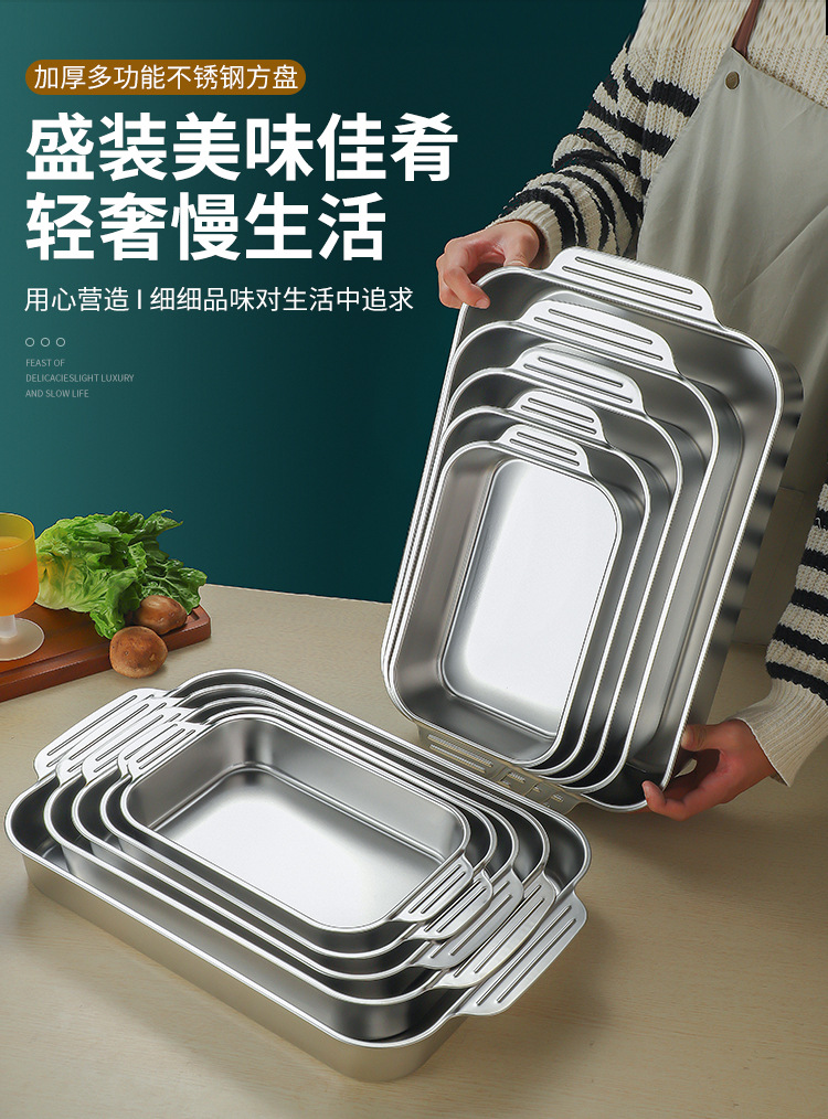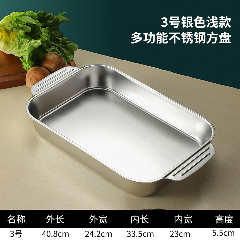 스테인레스 스틸 평평한 바닥 두꺼운 구운 생선 트레이 상업용 직사각형 베이킹 트레이 황금 만두 접시 접시 밥 트레이