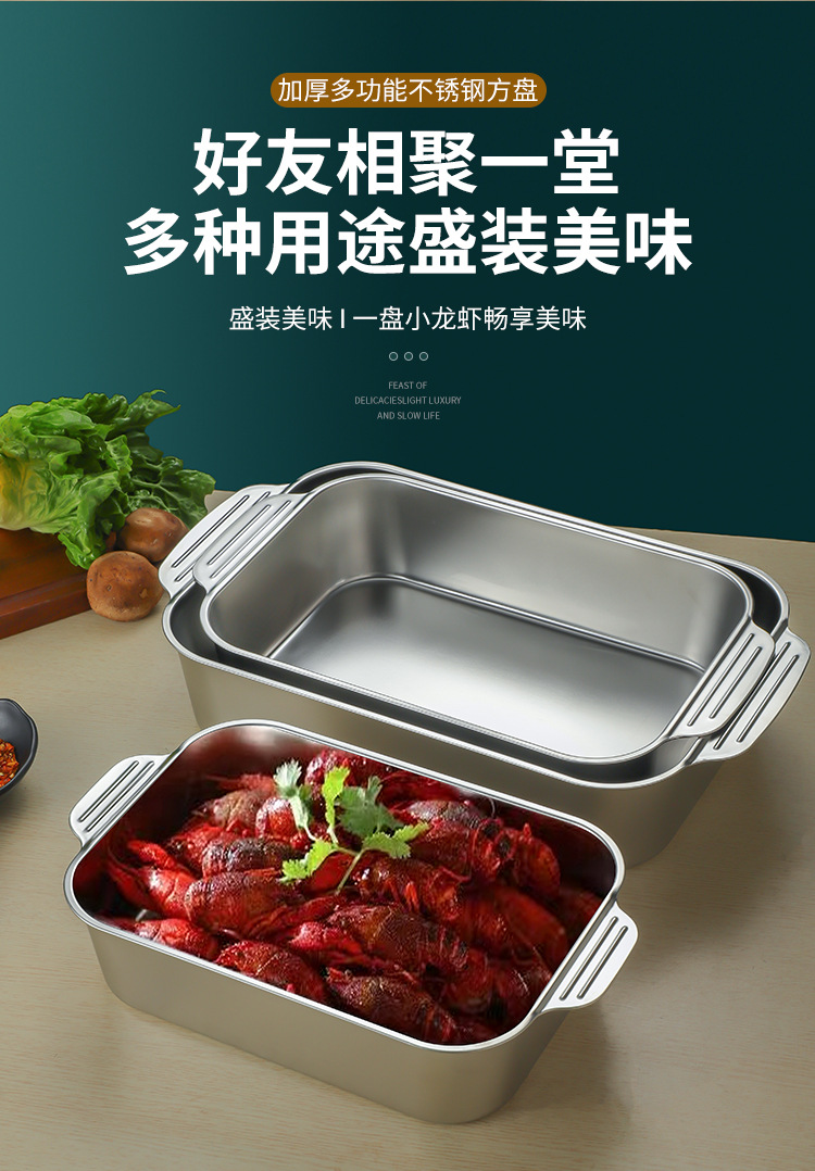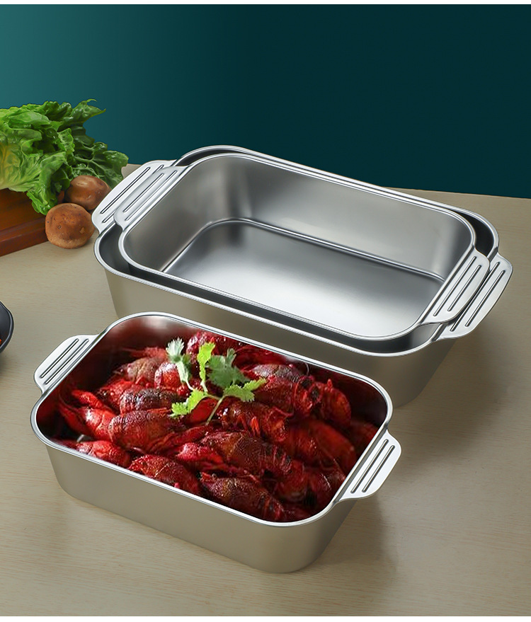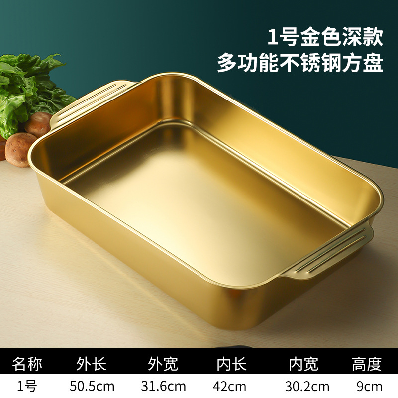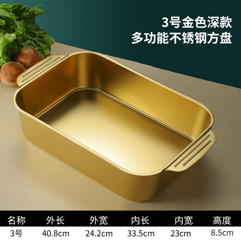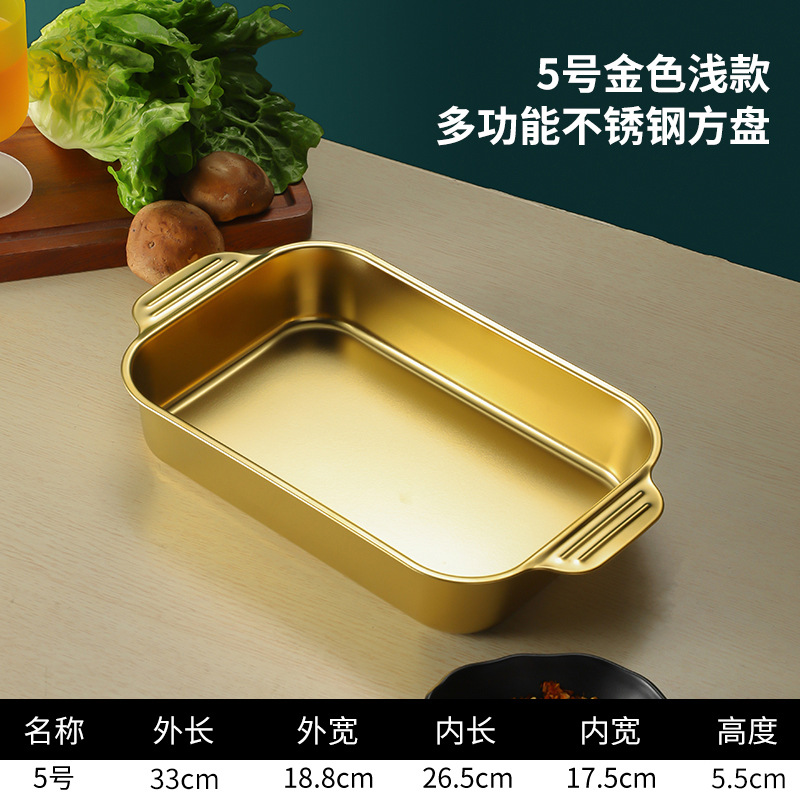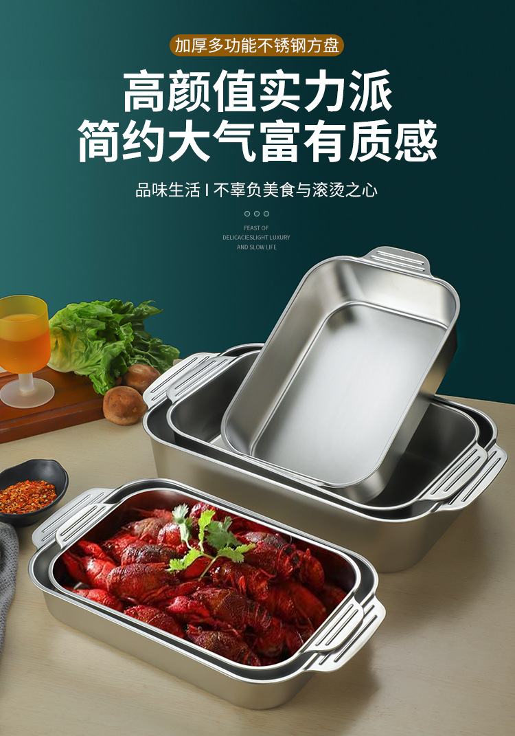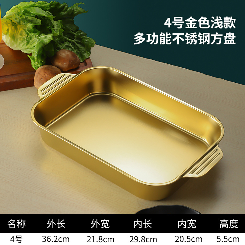 스테인레스 스틸 평평한 바닥 두꺼운 구운 생선 트레이 상업용 직사각형 베이킹 트레이 황금 만두 접시 접시 밥 트레이