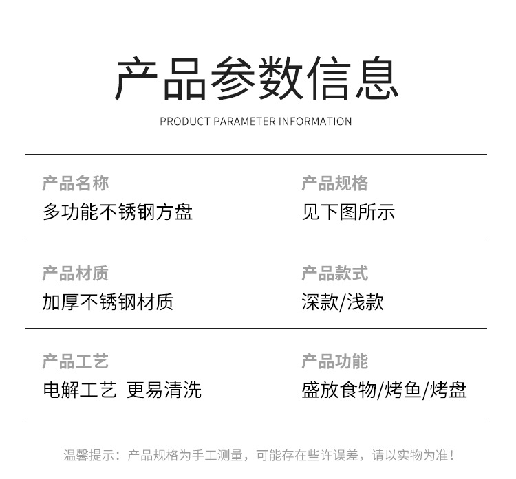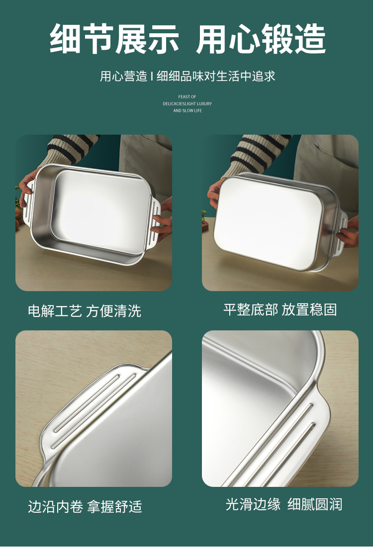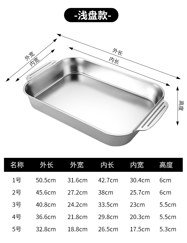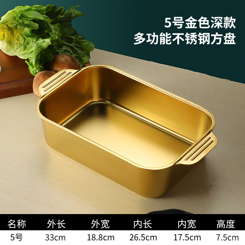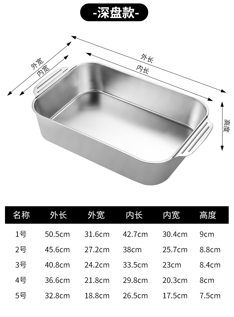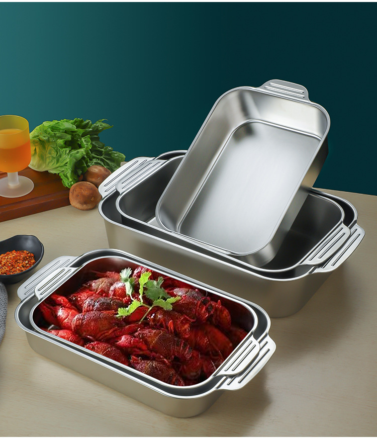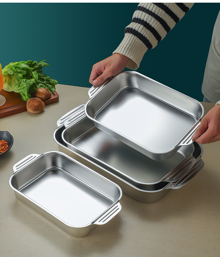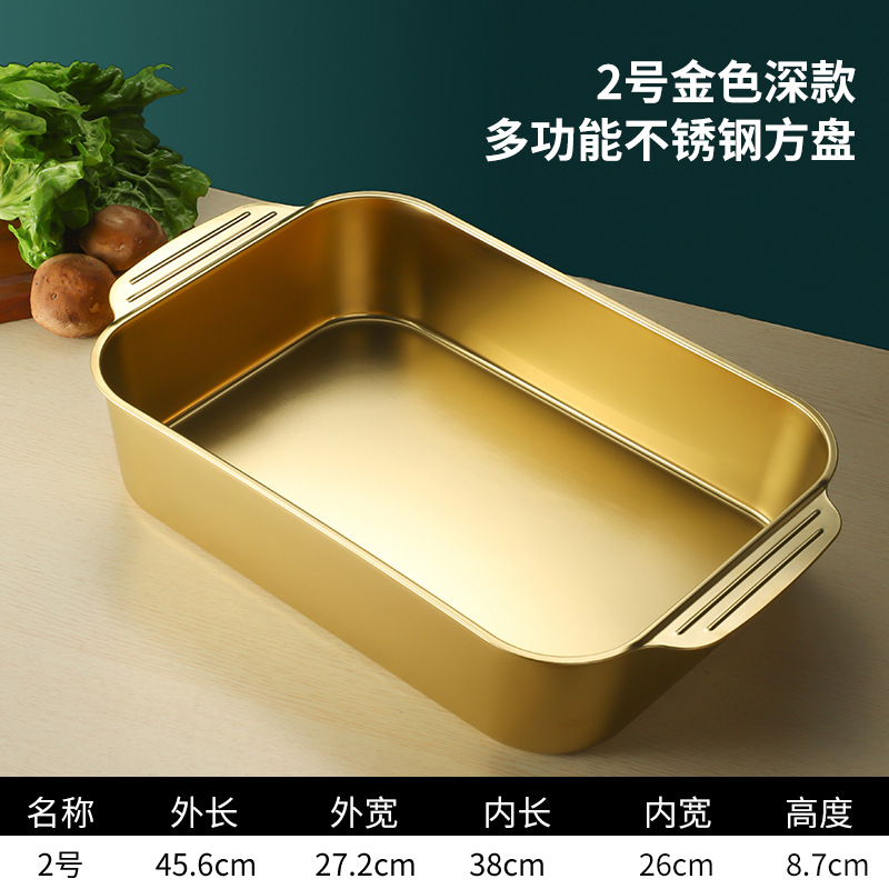 스테인레스 스틸 평평한 바닥 두꺼운 구운 생선 트레이 상업용 직사각형 베이킹 트레이 황금 만두 접시 접시 밥 트레이