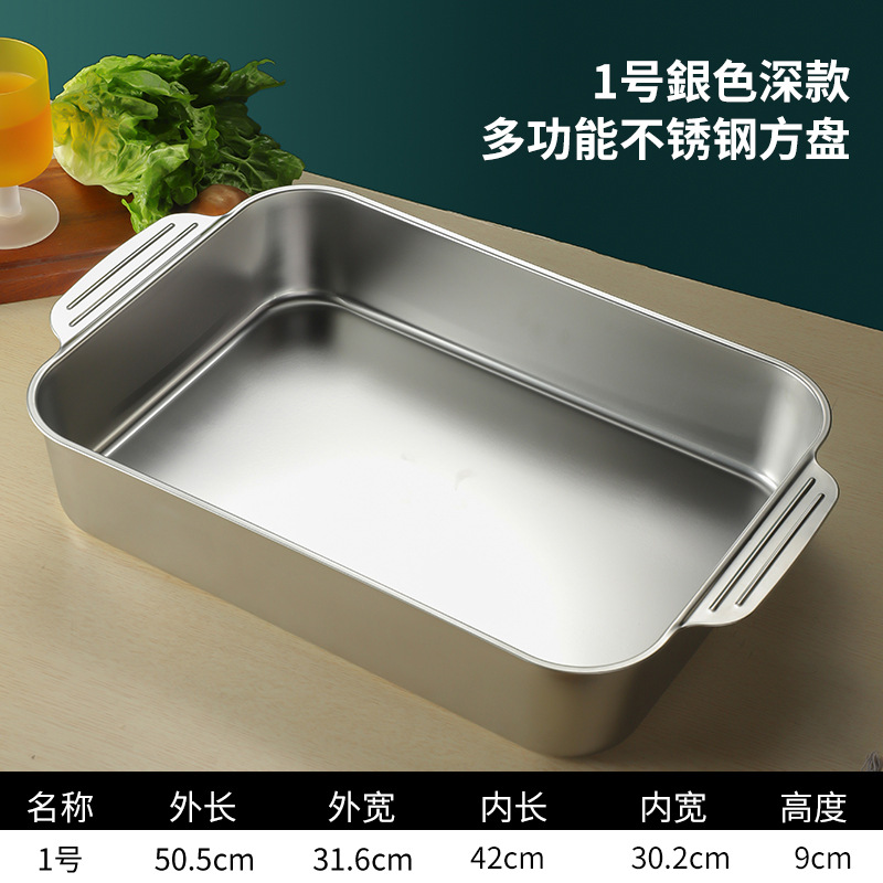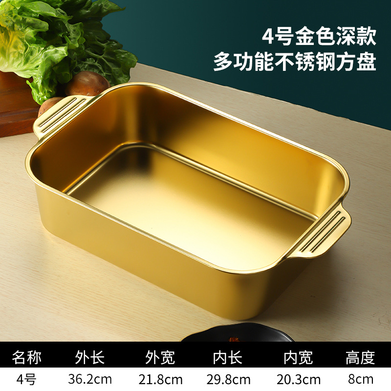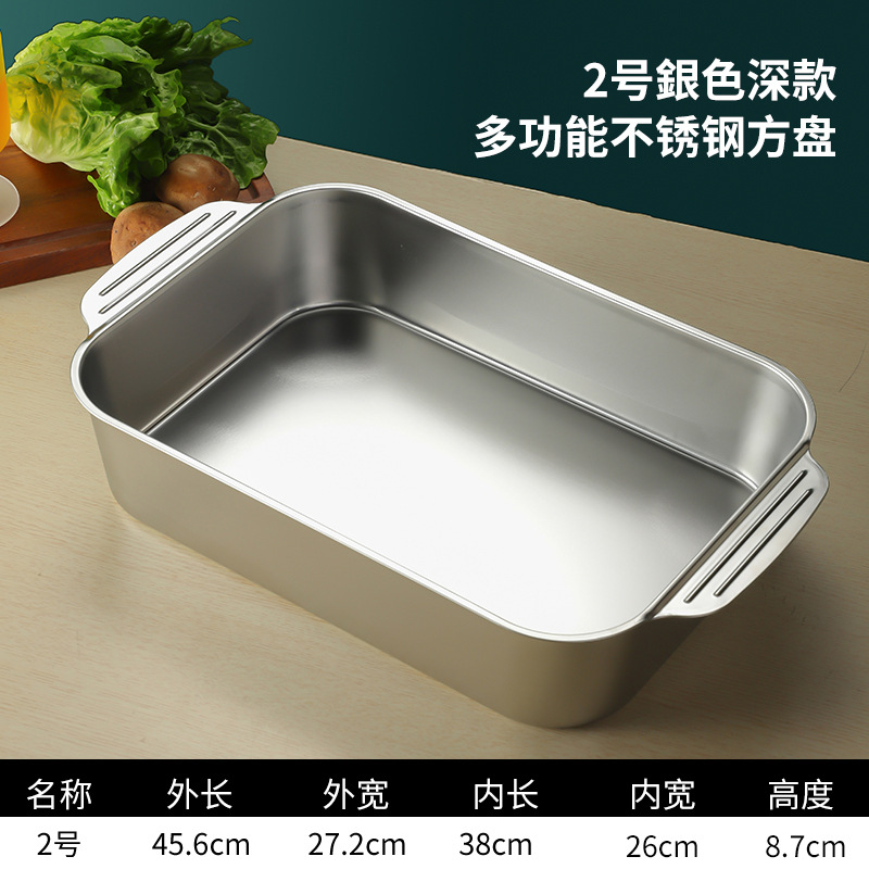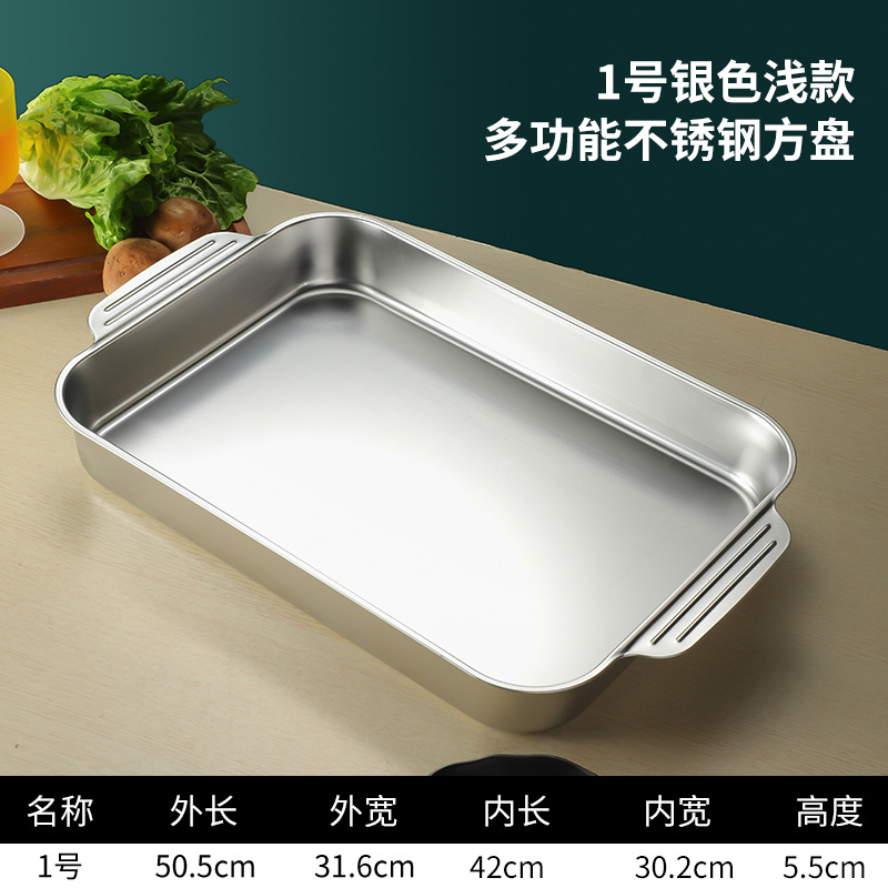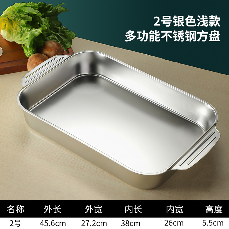 스테인레스 스틸 평평한 바닥 두꺼운 구운 생선 트레이 상업용 직사각형 베이킹 트레이 황금 만두 접시 접시 밥 트레이스토어 가기