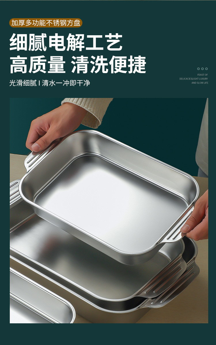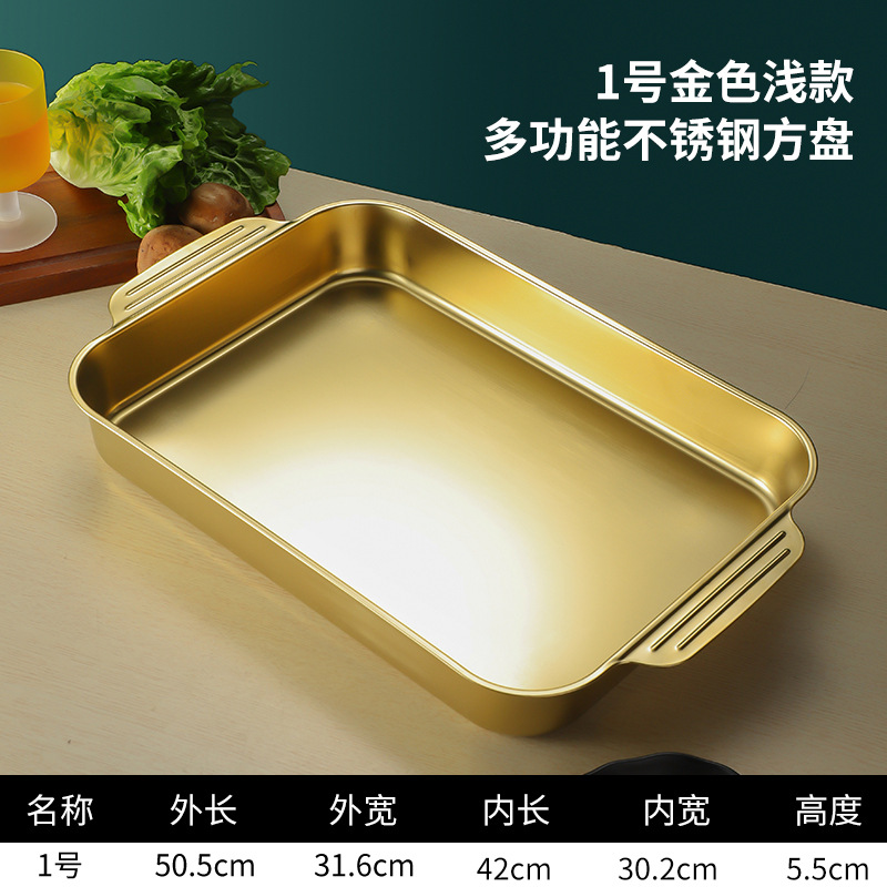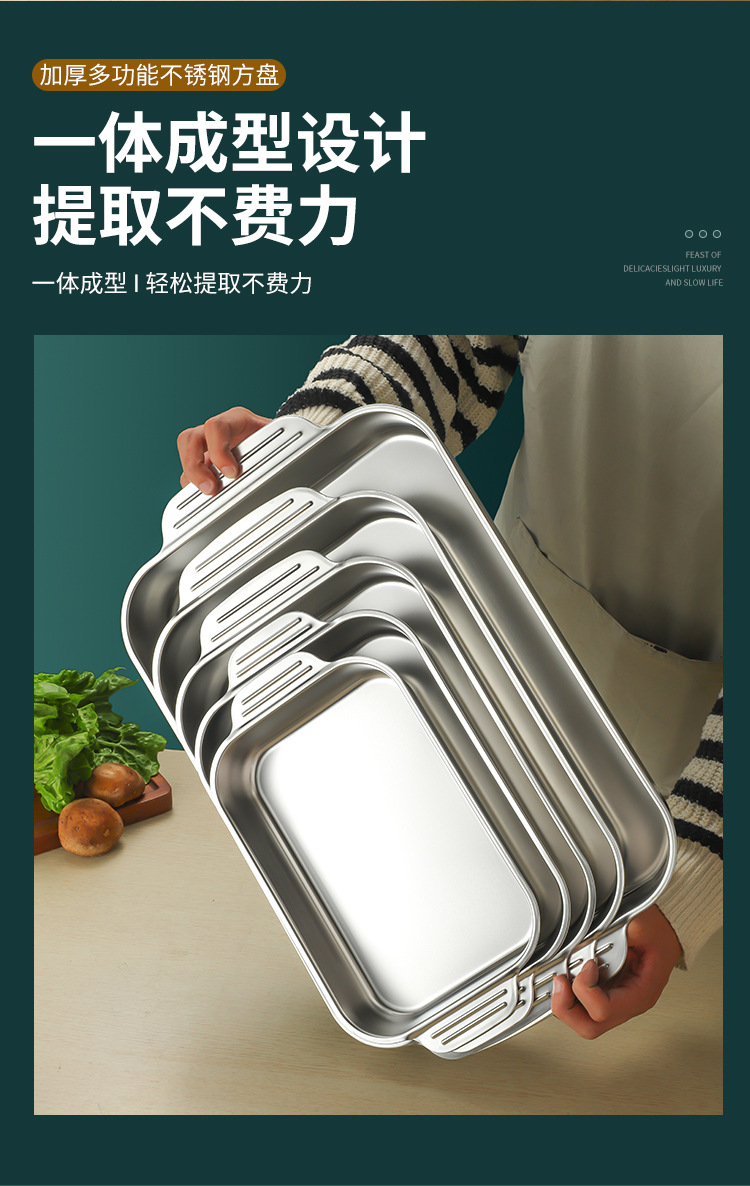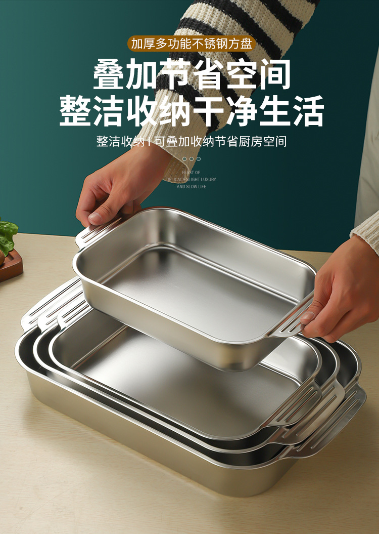 스테인레스 스틸 평평한 바닥 두꺼운 구운 생선 트레이 상업용 직사각형 베이킹 트레이 황금 만두 접시 접시 밥 트레이스토어 가기