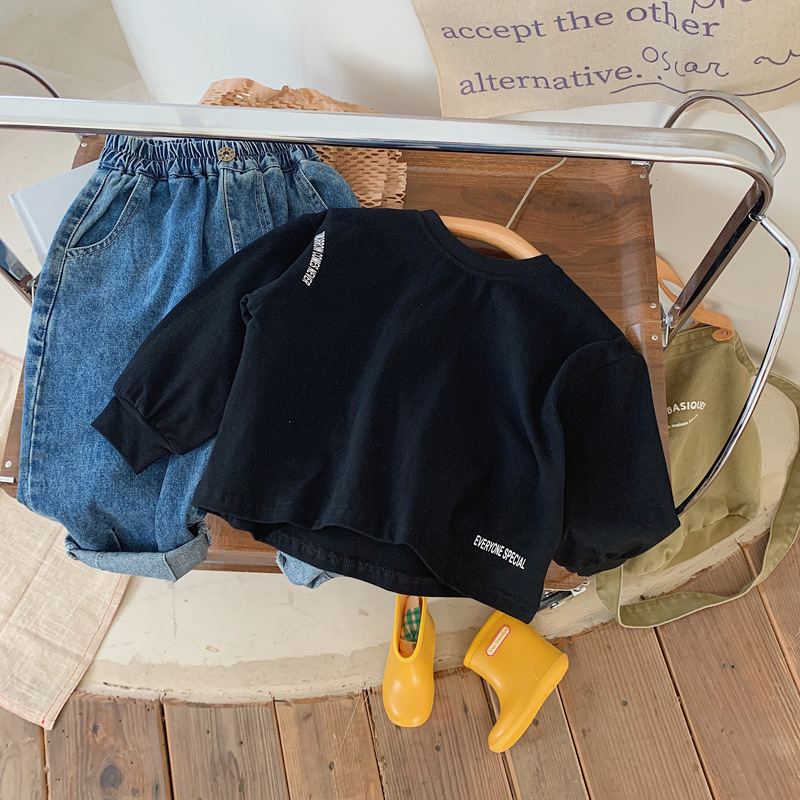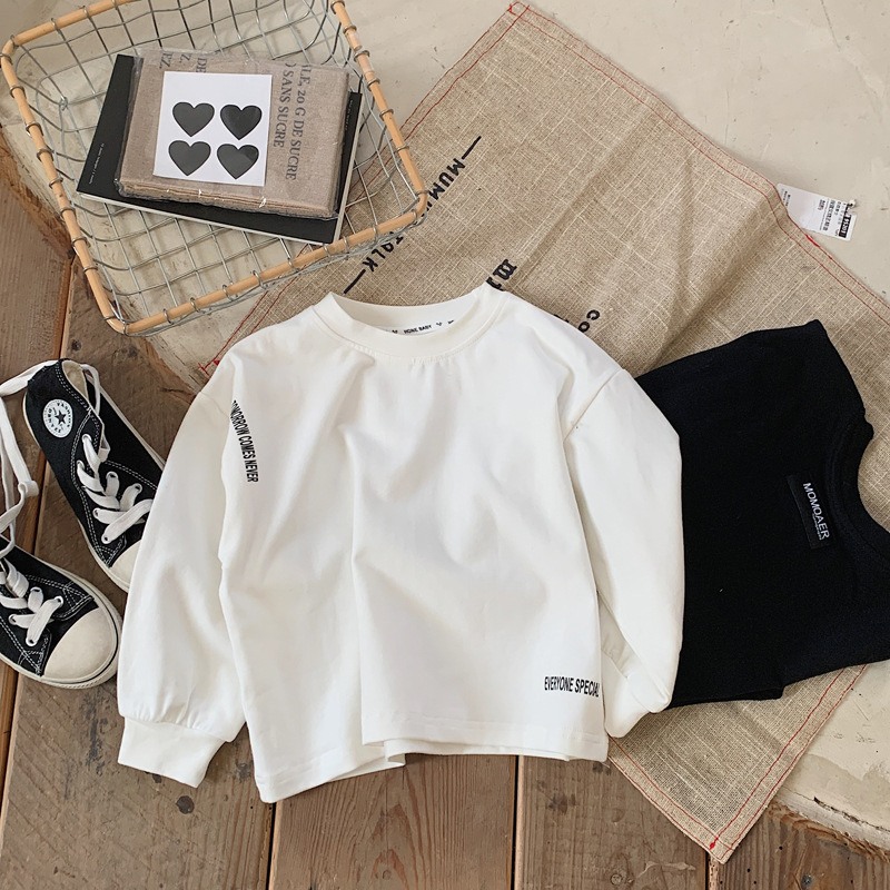 어린이용 흰색 티셔츠 2025 가을 남아용 이너웨어 긴팔 아기 봄옷 얇은 남아용 순면 어린이 상의스토어 가기