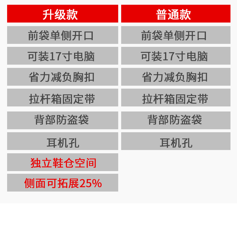 • 대형 블랙 업그레이드 80L 의 표준 버전 없음 (확장 + 신발 창고 + 플러그 벨트 + 도난 방지)