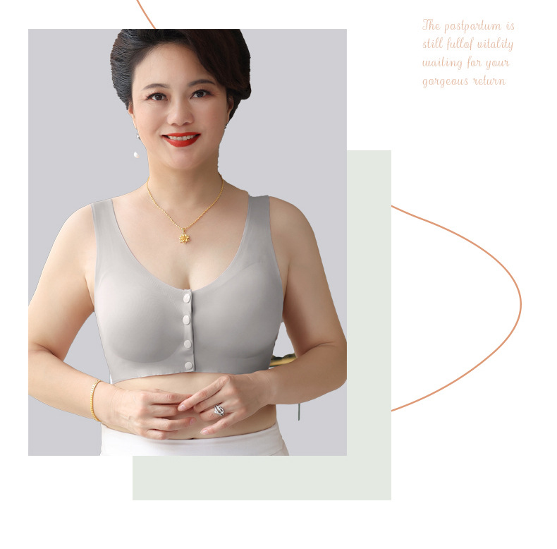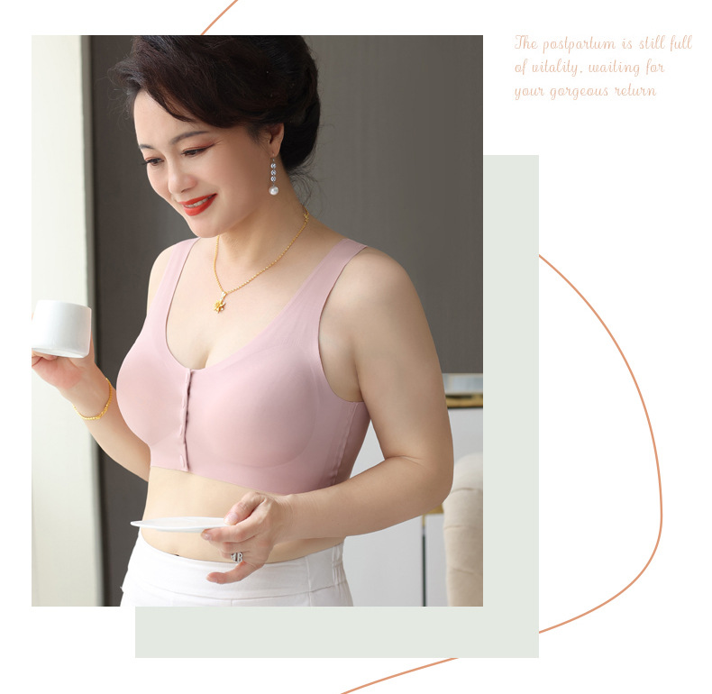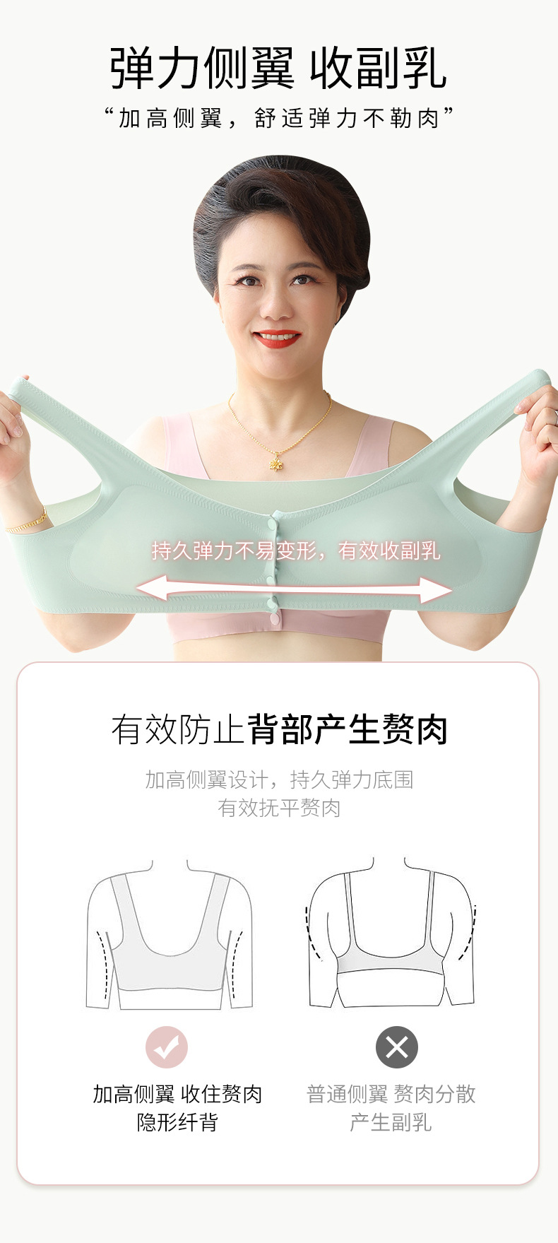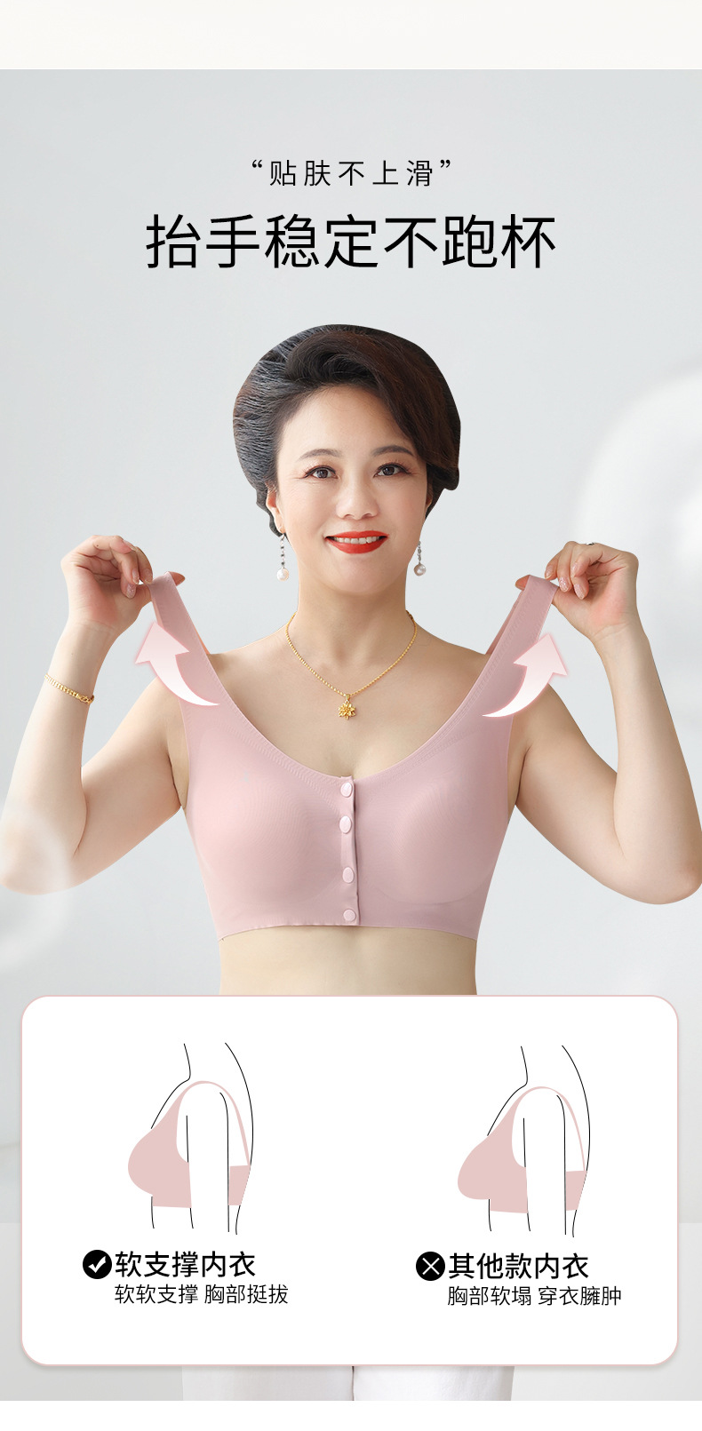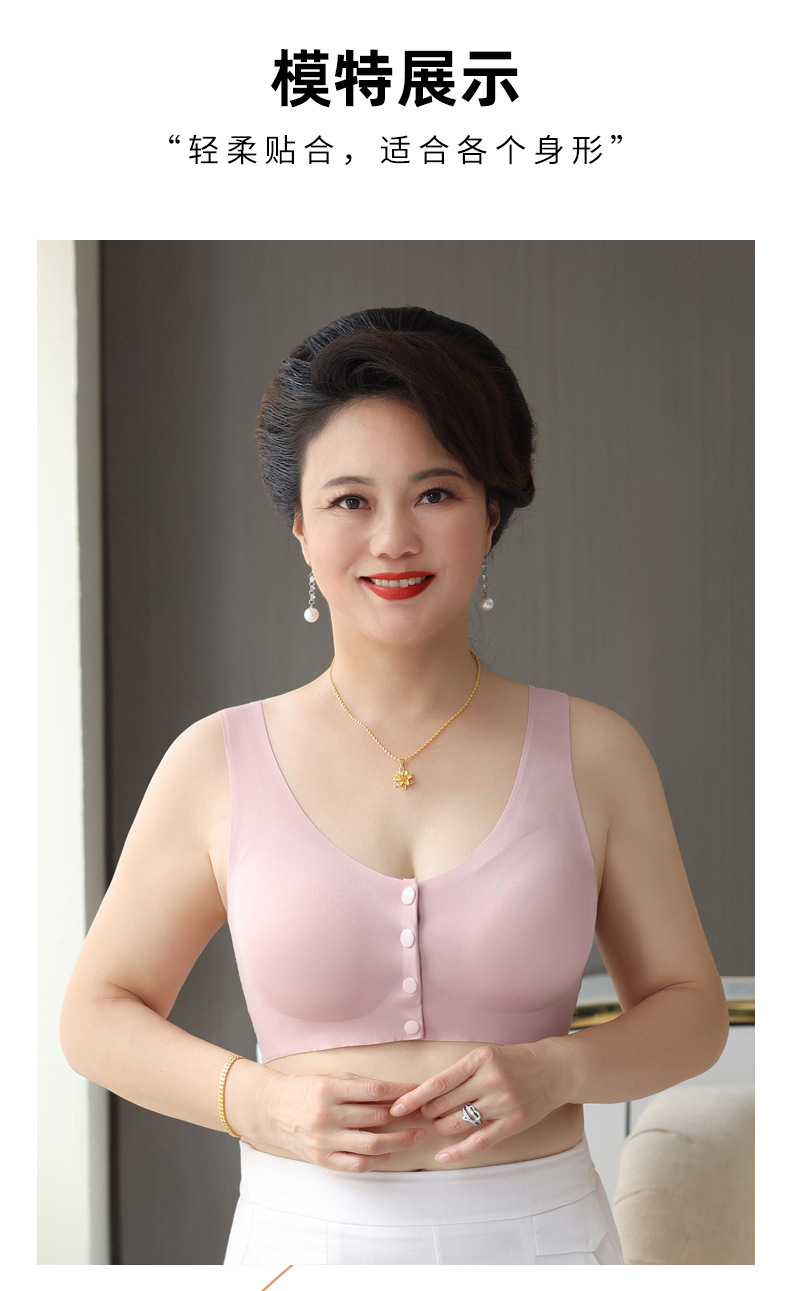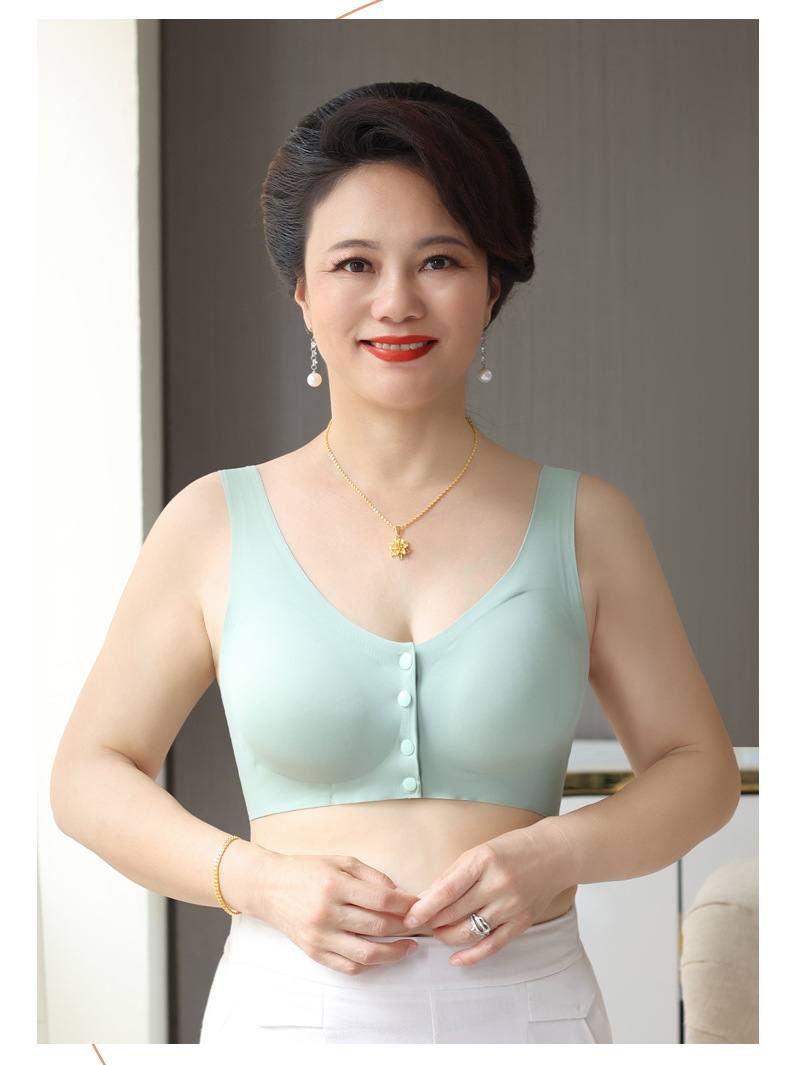어머니의 속옷 여성의 조끼 스타일 여름 얇은 속옷 노인을위한 앞 버클 없음 강철 반지 없음 원활한 중년 여성의 브래지어