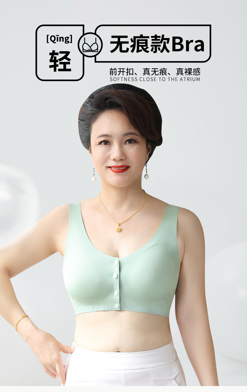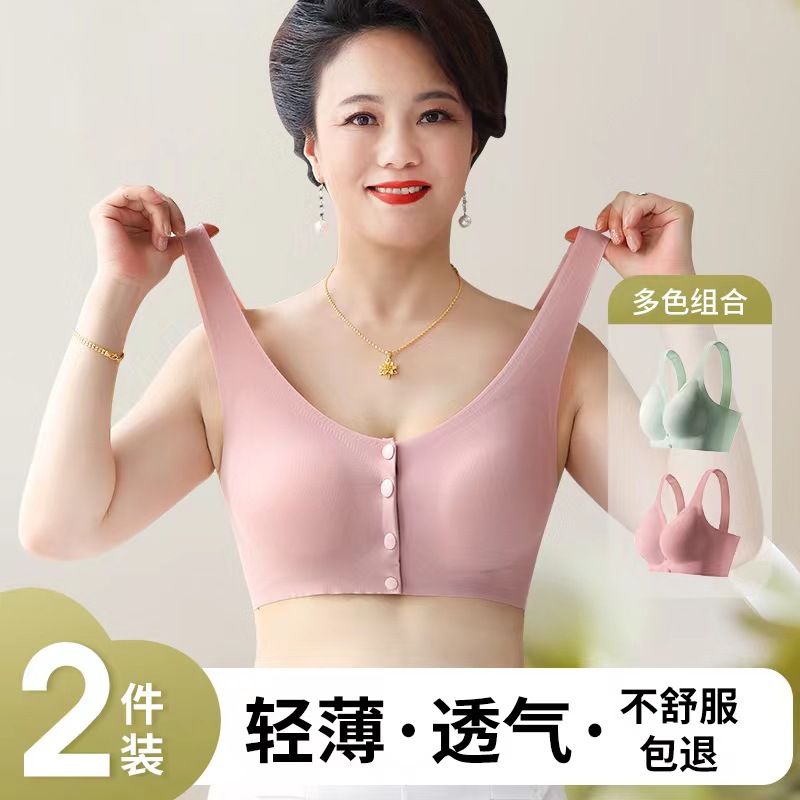 어머니의 속옷 여성의 조끼 스타일 여름 얇은 속옷 노인을위한 앞 버클 없음 강철 반지 없음 원활한 중년 여성의 브래지어스토어 가기
