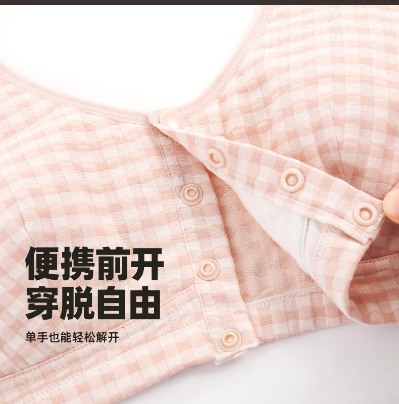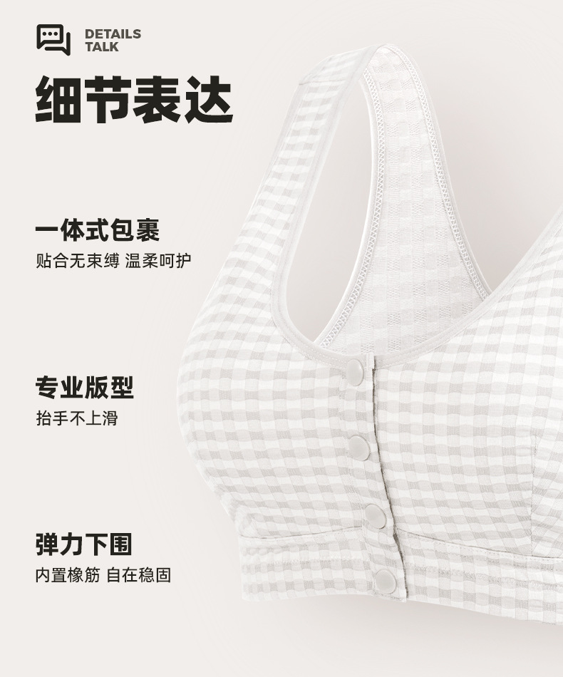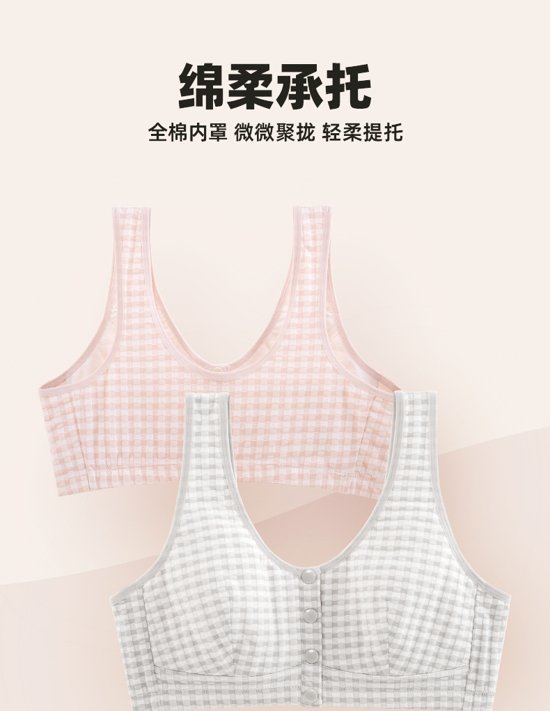 [A 급] 어버이복 플러스 사이즈 전면 버클 브래지어 여성 격자 무늬 중년 밀고둥이 노인 대외무역용 조끼스토어 가기