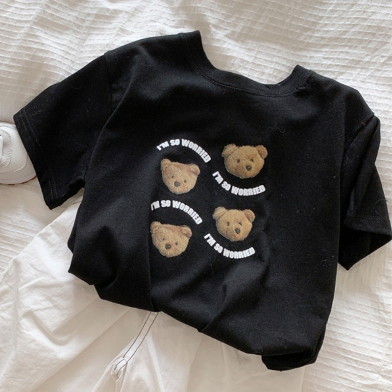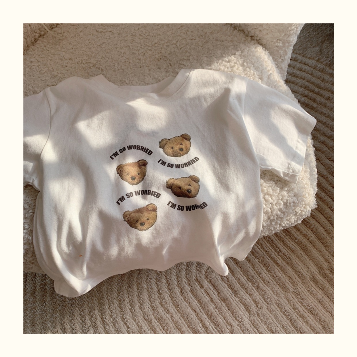 순수 코튼 어린이 귀여운 아기 반팔 티셔츠 여름 2025 소년과 소녀를위한 새로운 재미있는 곰 탑스토어 가기