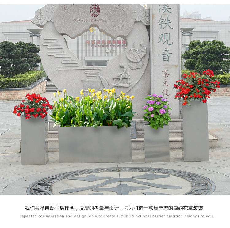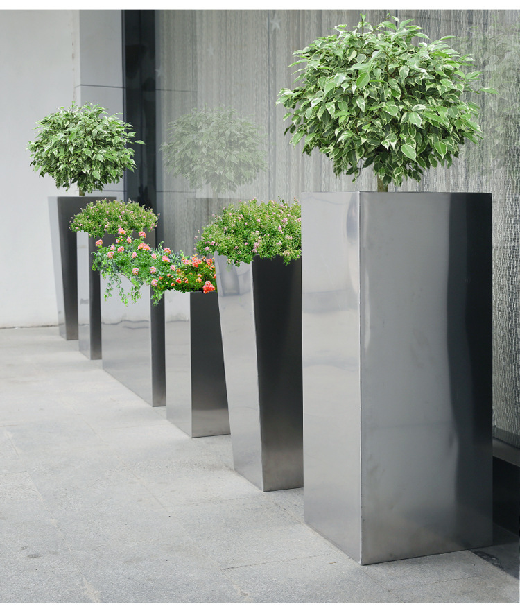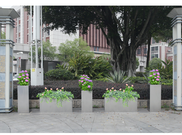 공장 직접 배치 야외 스테인레스 스틸 꽃 상자 꽃 장치 심기 상자 꽃 홈 야외 손 광택 꽃 침대