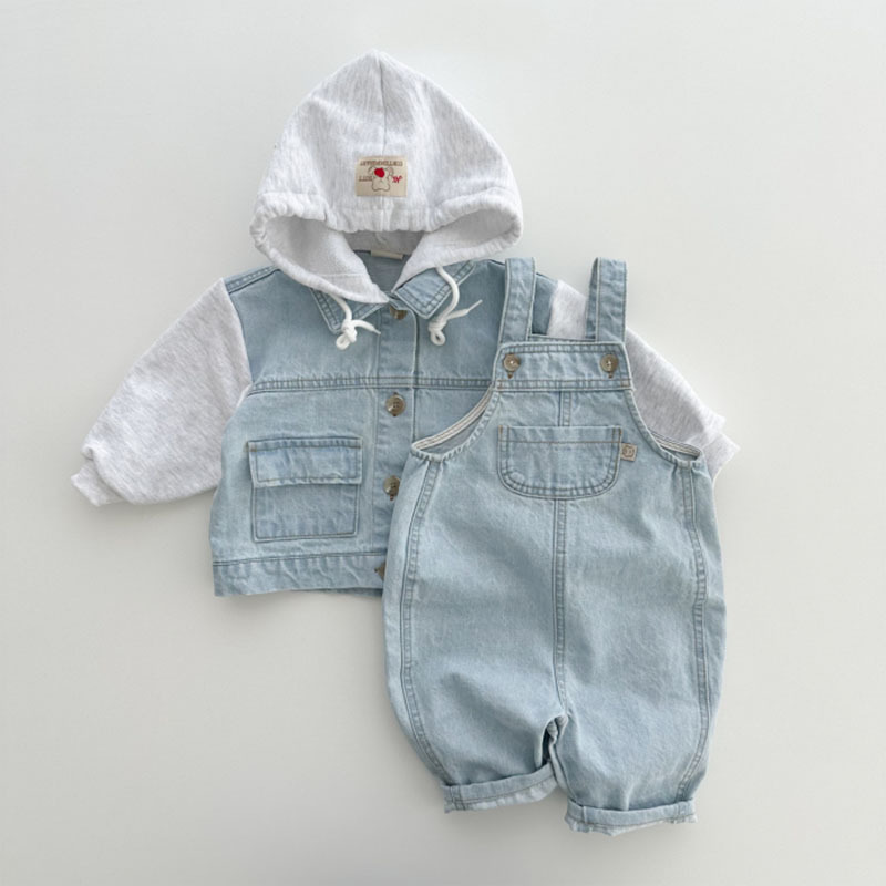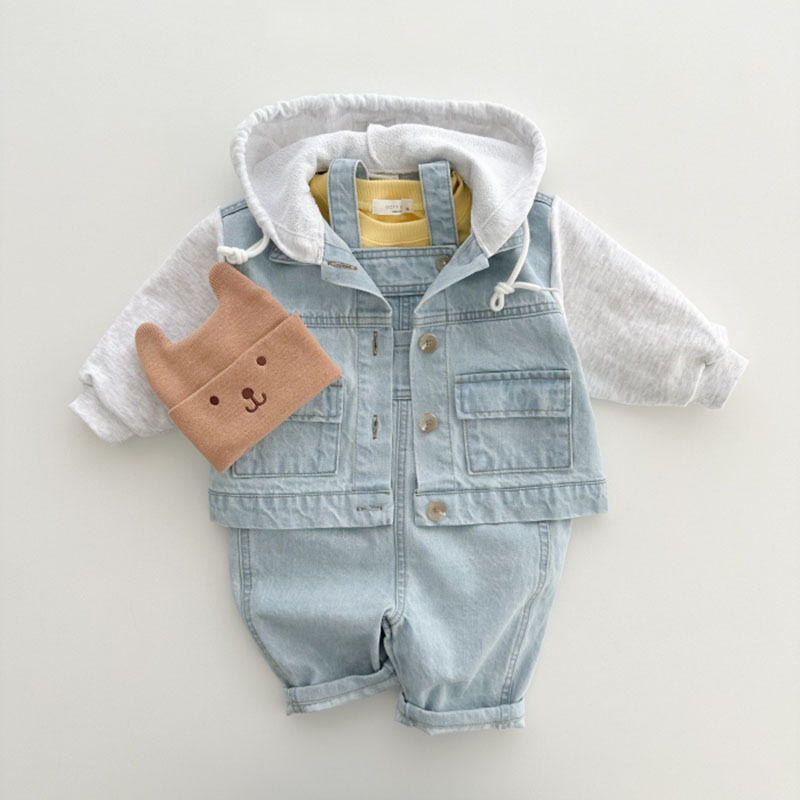 아기와 어린 아이의 의류에 한국 스타일 서양 스타일 데님 스트랩 바지 어린이 봄과 가을 유행 간단한 캐주얼 점프 슈트스토어 가기