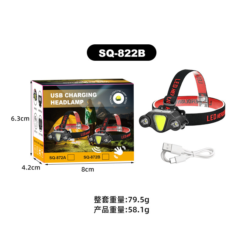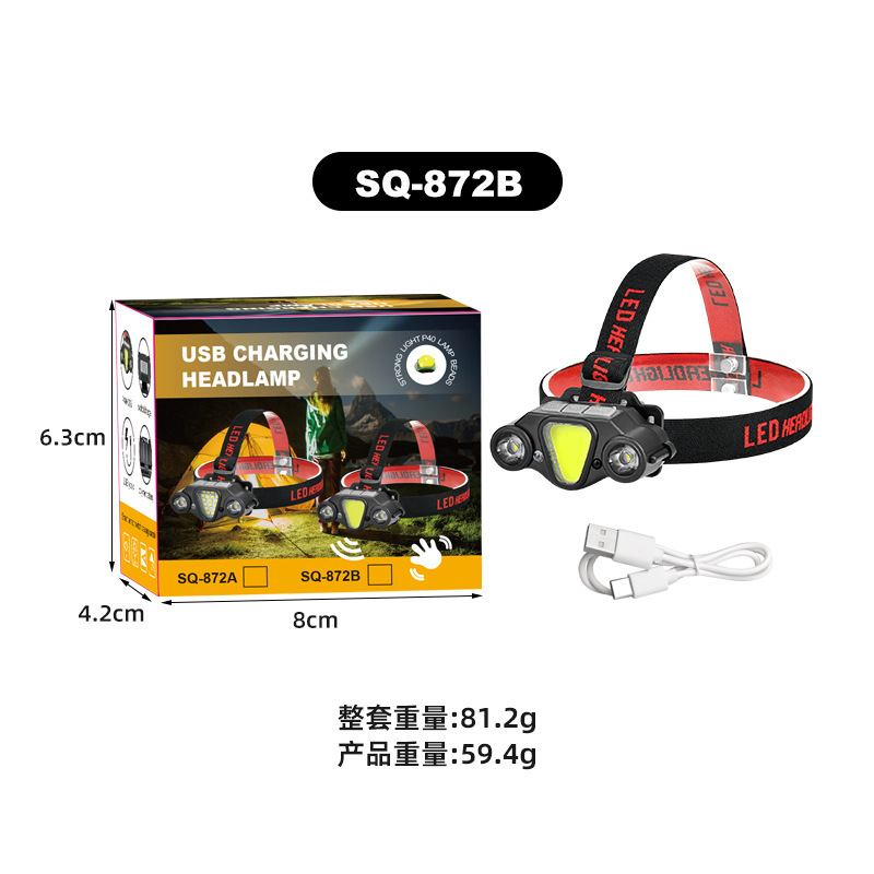 유도 LED 전조등 야외 LED 다기능 유도 USB 충전 전조등 COB 강한 빛 휴대용 야간 달리기 낚시등