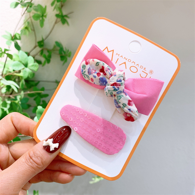 한국 스타일 새로운 어린이 패브릭 활 머리핀 소녀의 꽃 토끼 귀 머리핀 앞머리 깨진 머리 방울 BB 클립