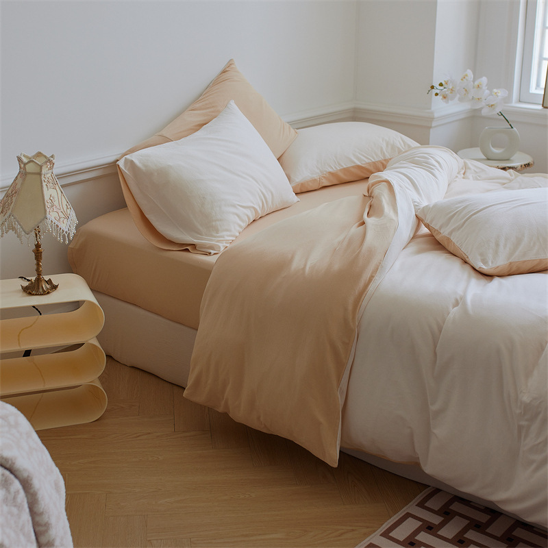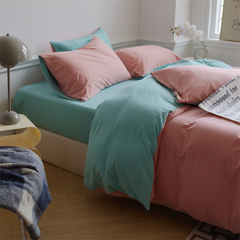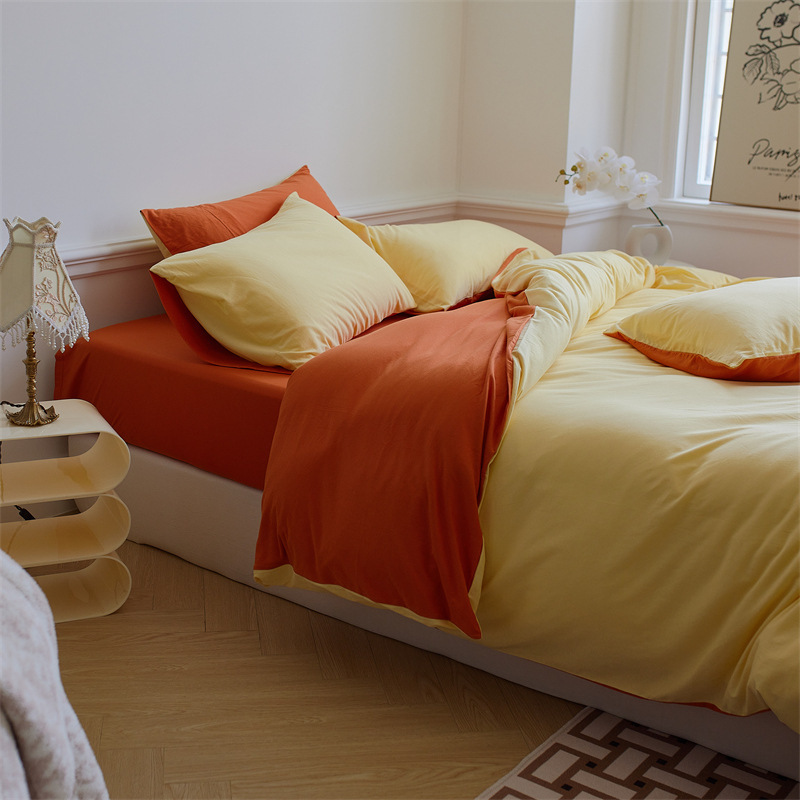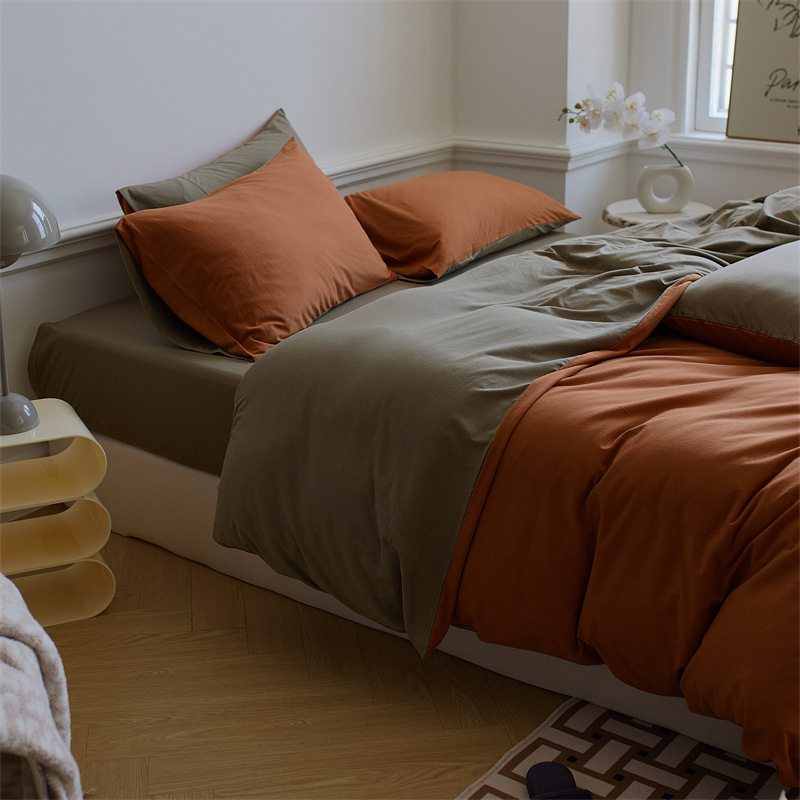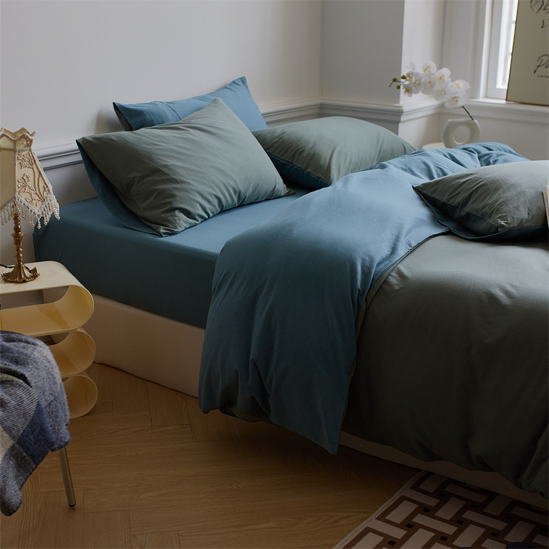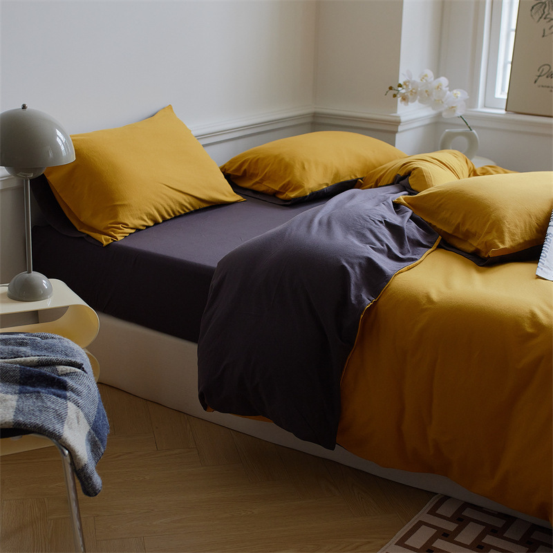 인쇄되지 않은 일본식 순면 니트 면 4 종 세트 단색 매칭 신장 천주 면 알몸 수면 더블 페어