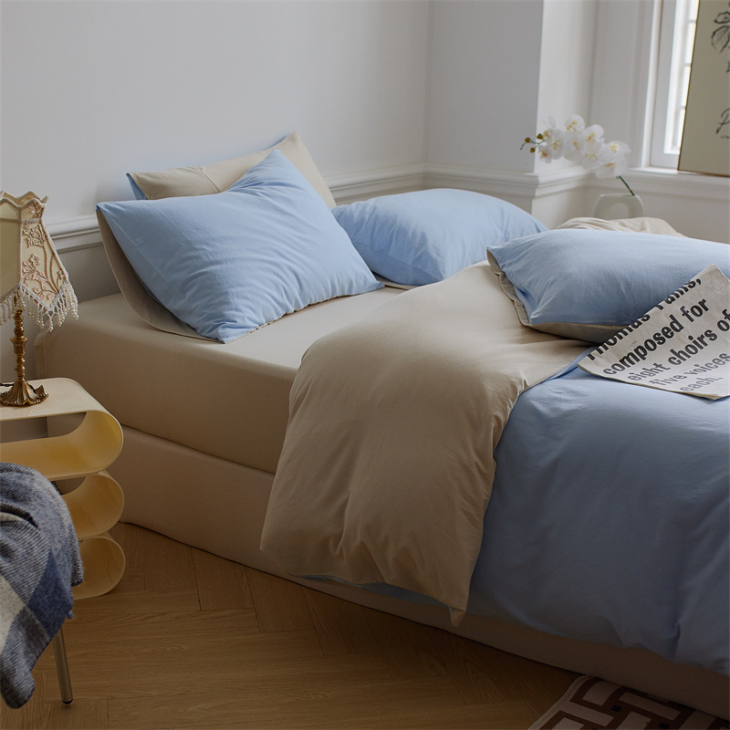 인쇄되지 않은 일본식 순면 니트 면 4 종 세트 단색 매칭 신장 천주 면 알몸 수면 더블 페어스토어 가기
