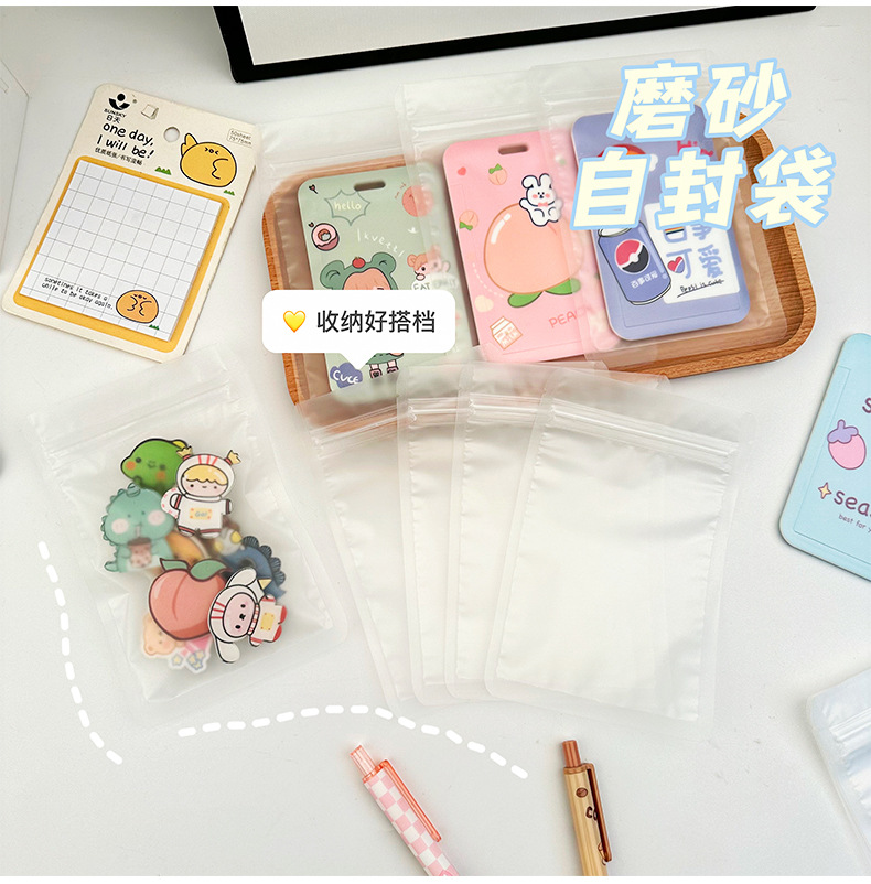 젖빛 투명 자체 밀봉 백 두꺼운 스몰 사이즈 문구 소형 소포장 플라스틱 보관 백 밀폐 입 포장 백 도매스토어 가기