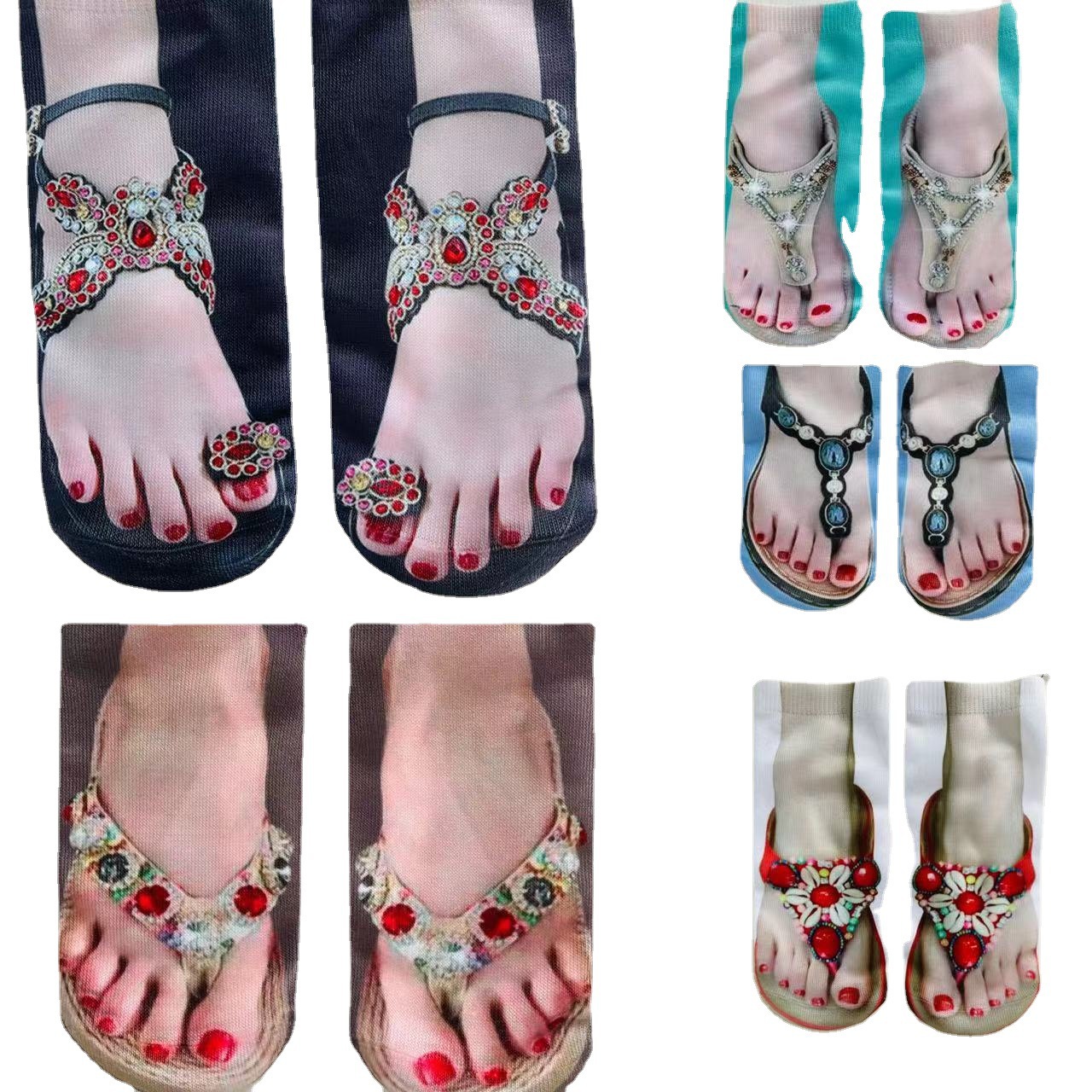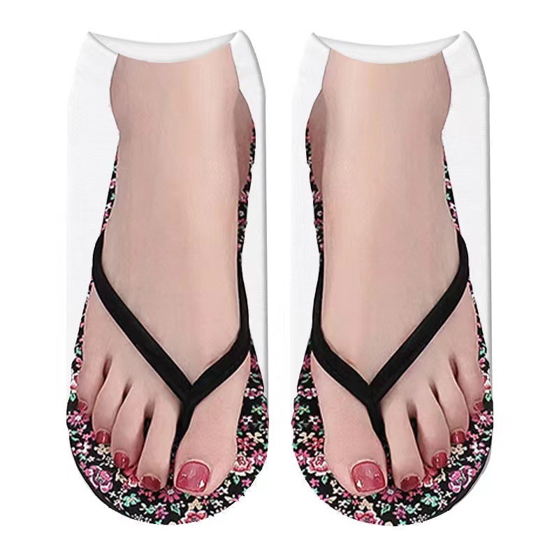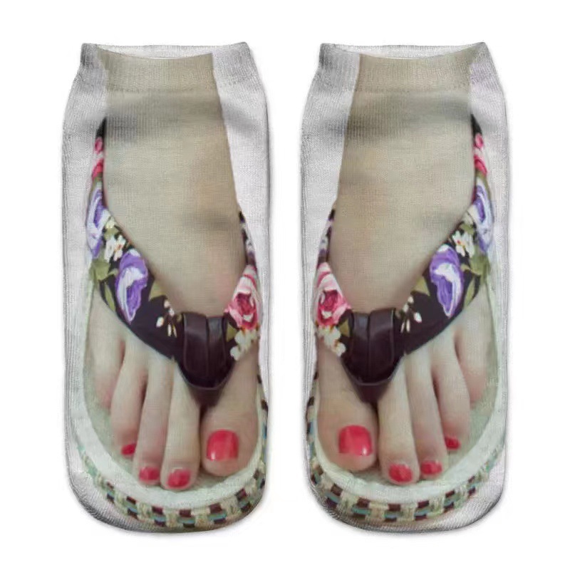 새로운 3D 인쇄 양말 캔버스 신발 여성용 플립 플롭 네일 아트 양말 쉐이크 톤 인터넷 인기 같은 AliExpress 재미있는 양말스토어 가기