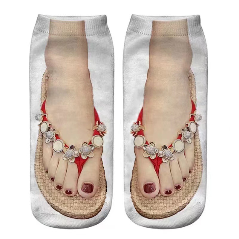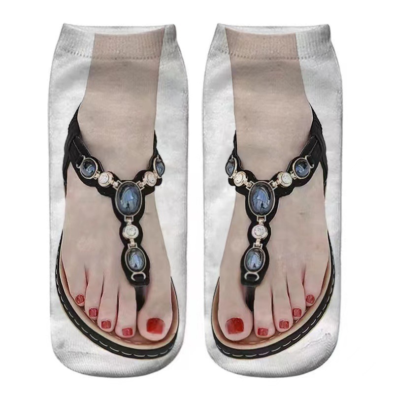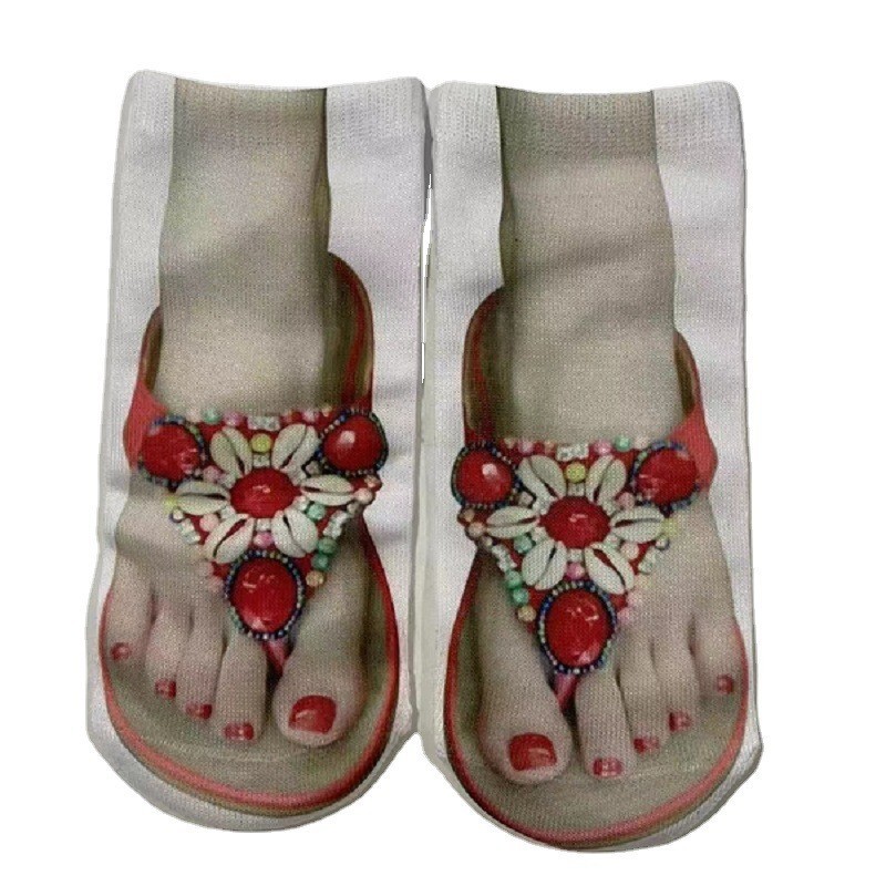 새로운 3D 인쇄 양말 캔버스 신발 여성용 플립 플롭 네일 아트 양말 쉐이크 톤 인터넷 인기 같은 AliExpress 재미있는 양말