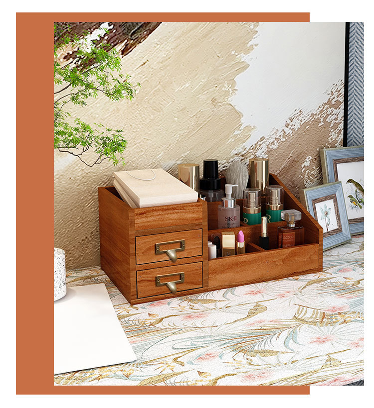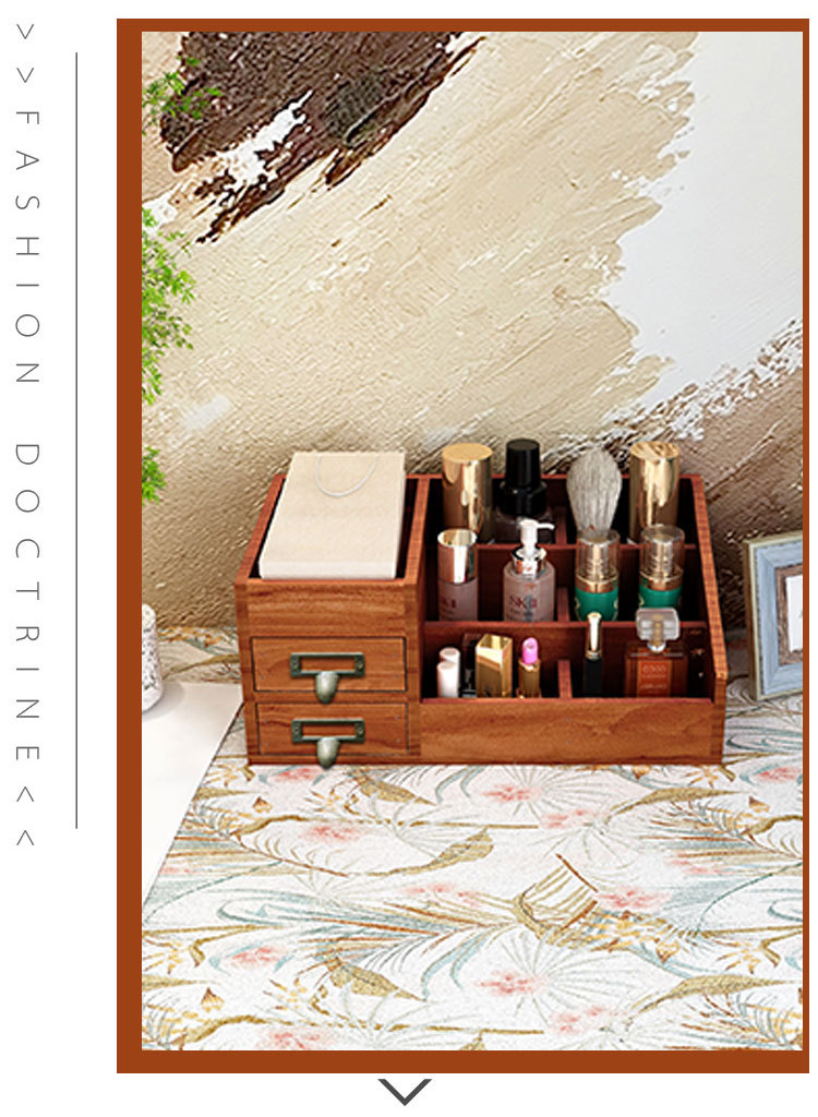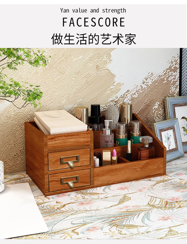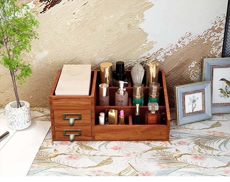 데스크탑 보관함 나무 빈티지 화장대 향수 화장품 보관 랙 책상 테이블 컵 단단한 나무 캐비닛