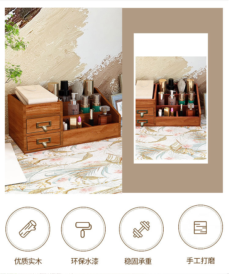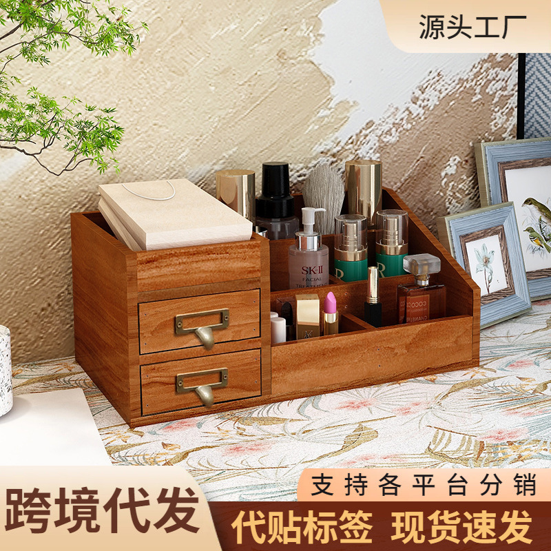 데스크탑 보관함 나무 빈티지 화장대 향수 화장품 보관 랙 책상 테이블 컵 단단한 나무 캐비닛스토어 가기