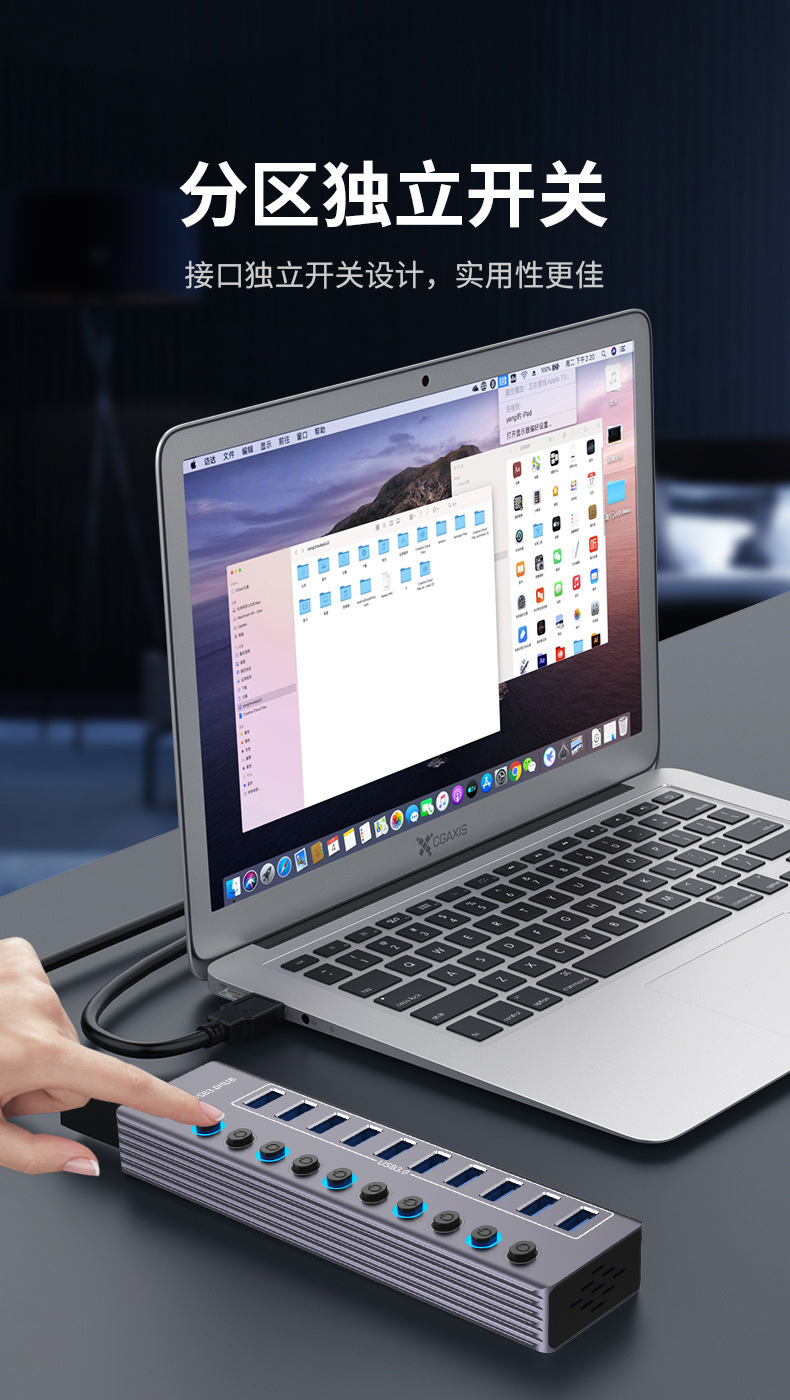 USB3.0HUB 확장기 10-표시기 노트북이있는 포트 스플리터 독립 스위치 7-포트 허브