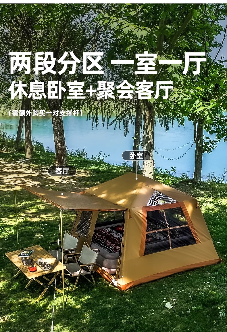 Explorer 여유로운 캐빈 자동 풍선 텐트 야외 캠핑 하룻밤 캠핑 장비 풀 세트 폭풍우 방지 농축스토어 가기
