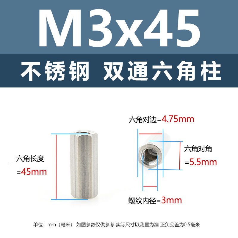 • M3*45(304 이중 통과 육각형 기둥)