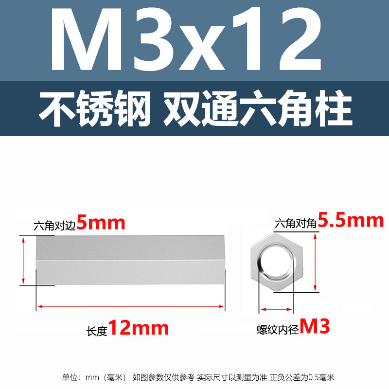 • M3*12(304 이중 통과 육각형 기둥)
