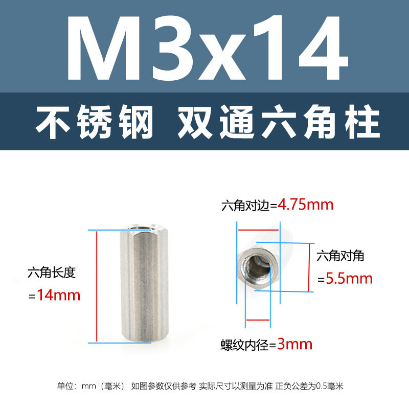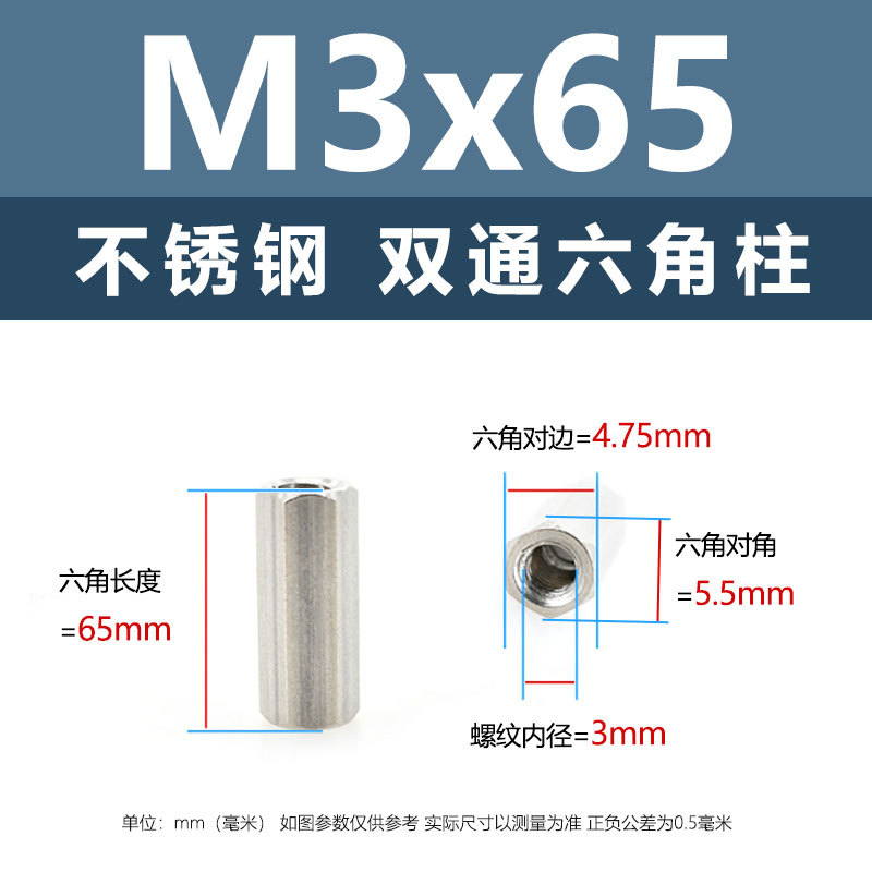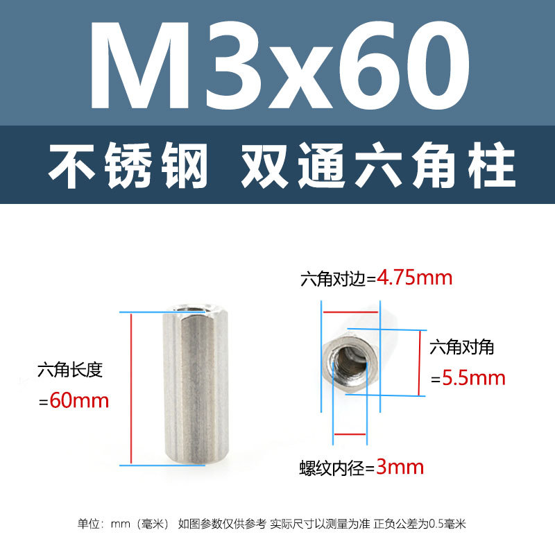 • M3*60(304 이중 통과 육각형 기둥)