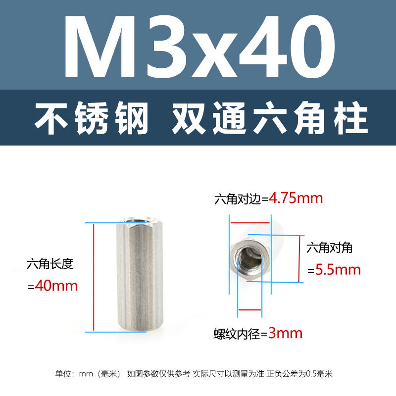 • M3*40(304 이중 통과 육각형 기둥)