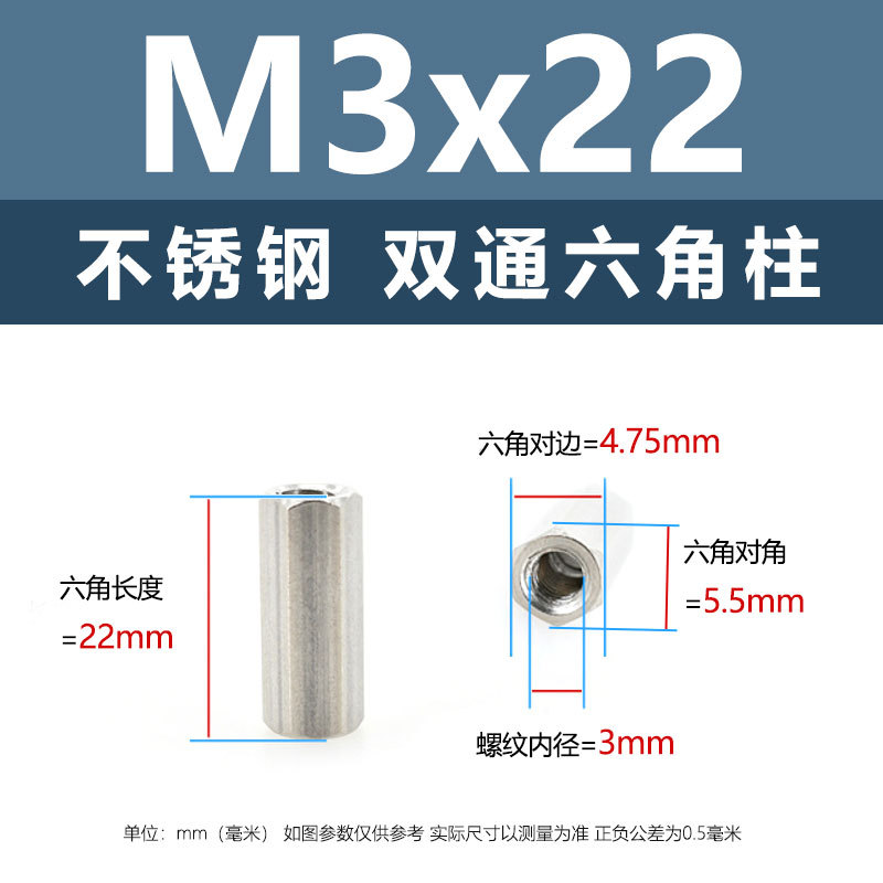 • M3*22(304 이중 통과 육각형 기둥)