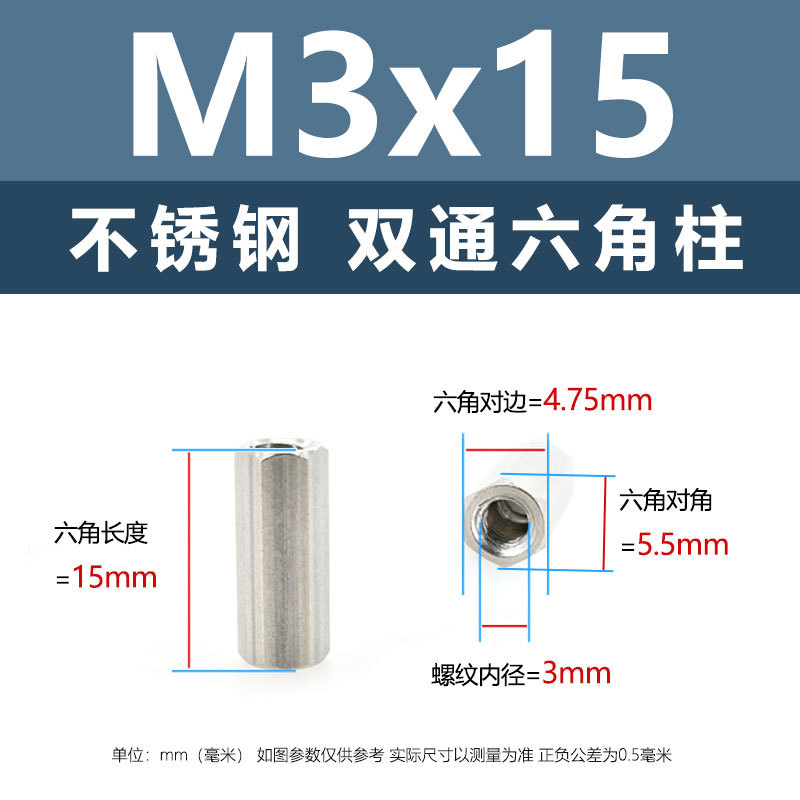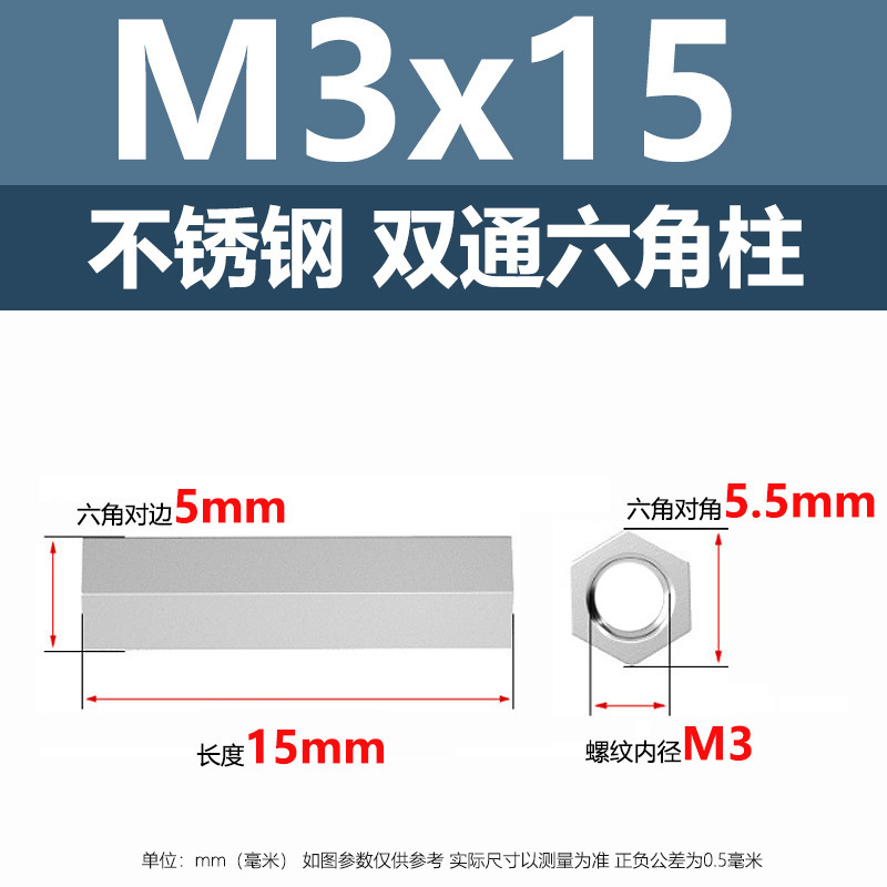 • M3*15(304 이중 통과 육각형 기둥)