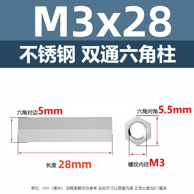 • M3*28(304 이중 통과 육각형 기둥)