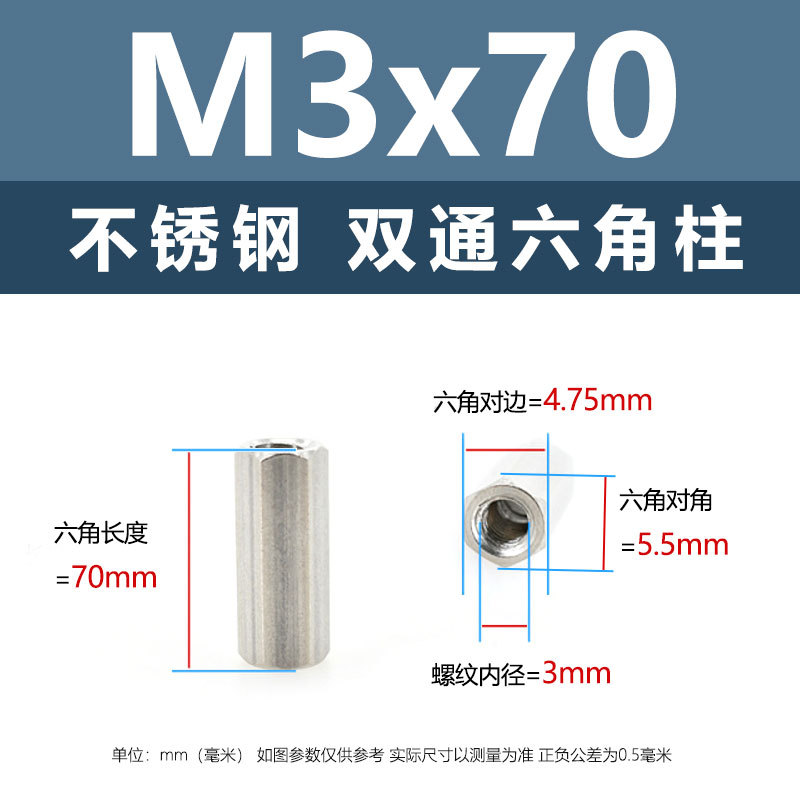• M5*70(304 이중 통과 육각형 기둥)