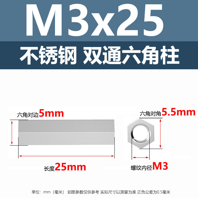 • M3*25(304 이중 통과 육각형 기둥)