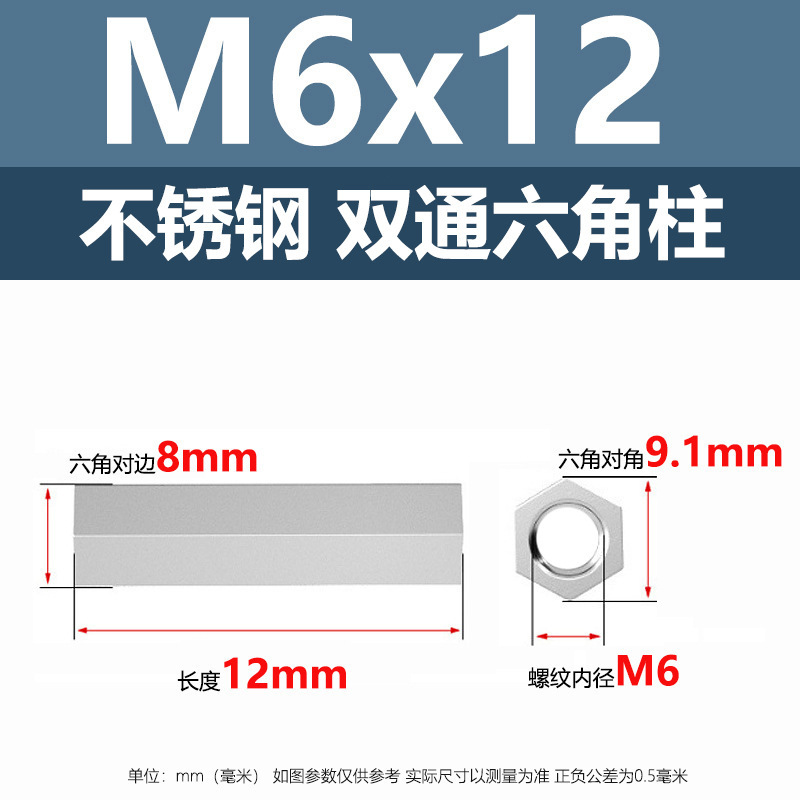 • M6*12(304 이중 통과 육각형 기둥)