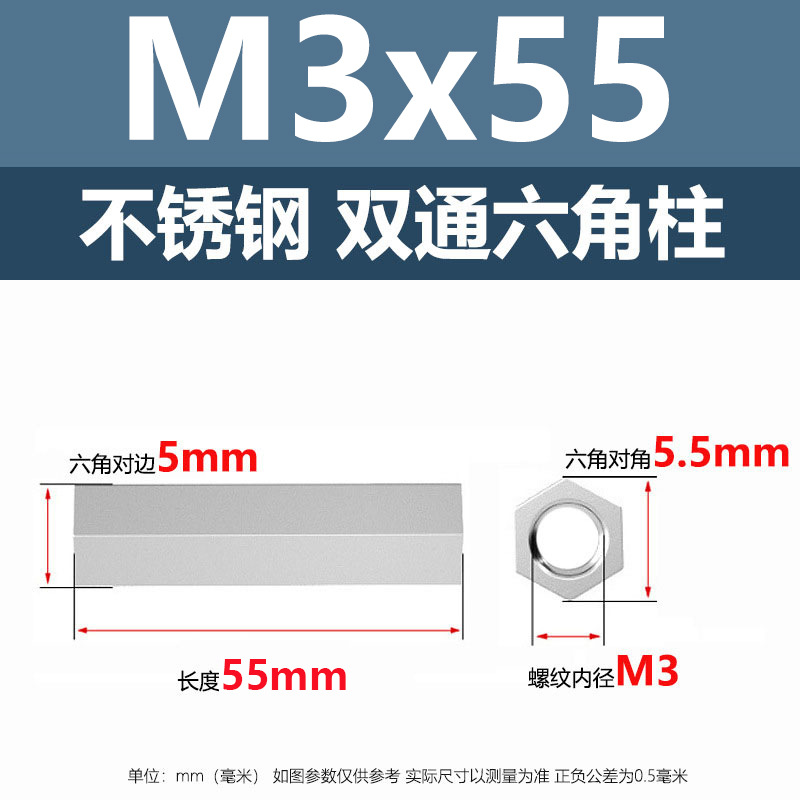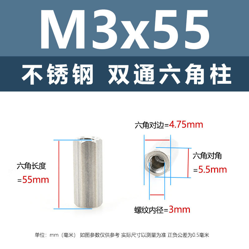 • M3*55(304 이중 통과 육각형 기둥)