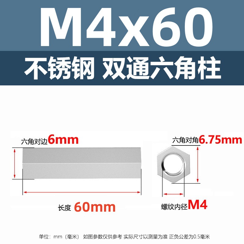 • M4*60(304 이중 통과 육각형 기둥)