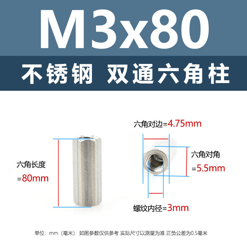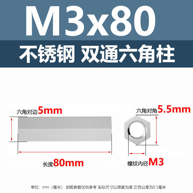 • M3*80(304 이중 통과 육각형 기둥)