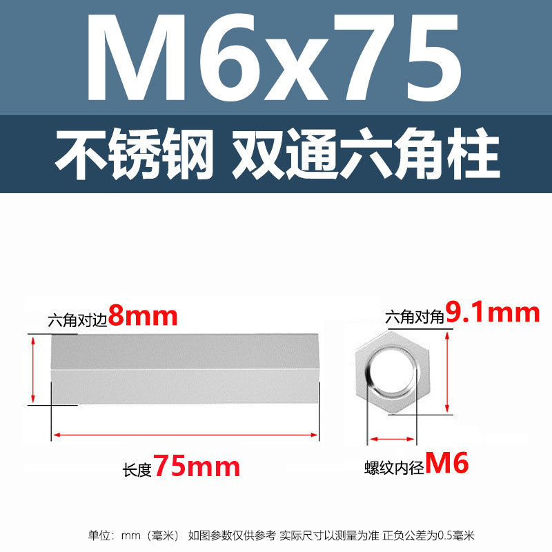 • M6*75(304 이중 통과 육각형 기둥)