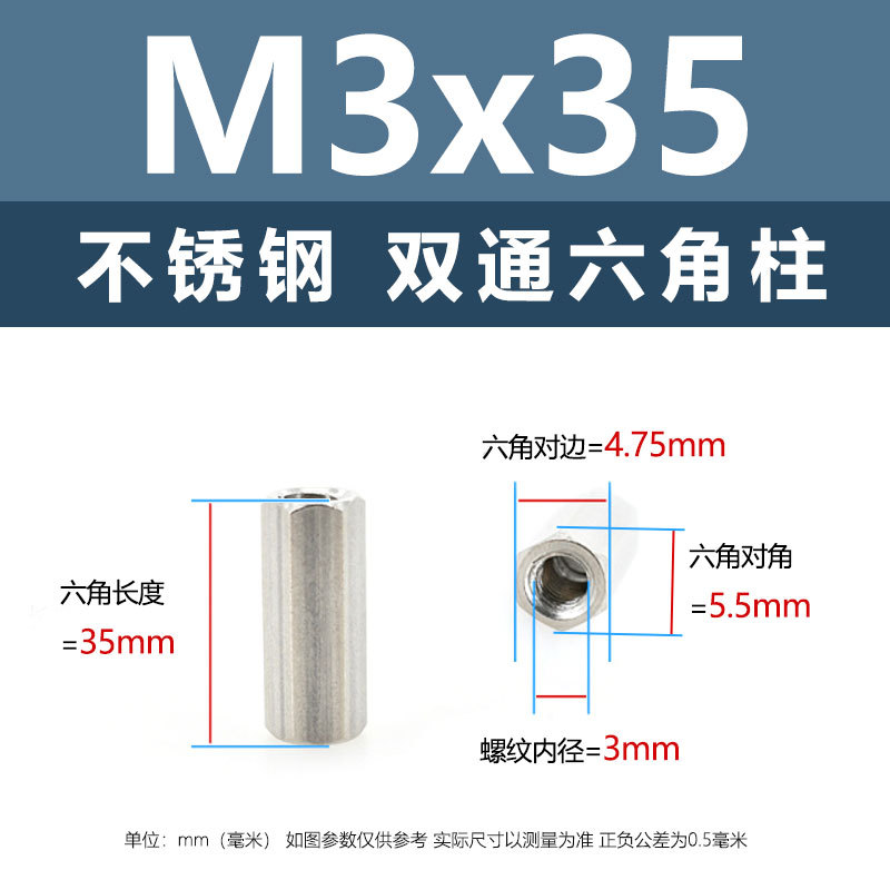 • M3*35(304 이중 통과 육각형 기둥)