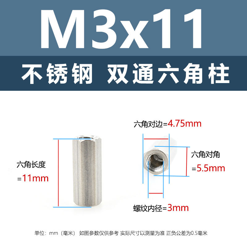 • M2.5*11(304 이중 통과 육각형 기둥)
