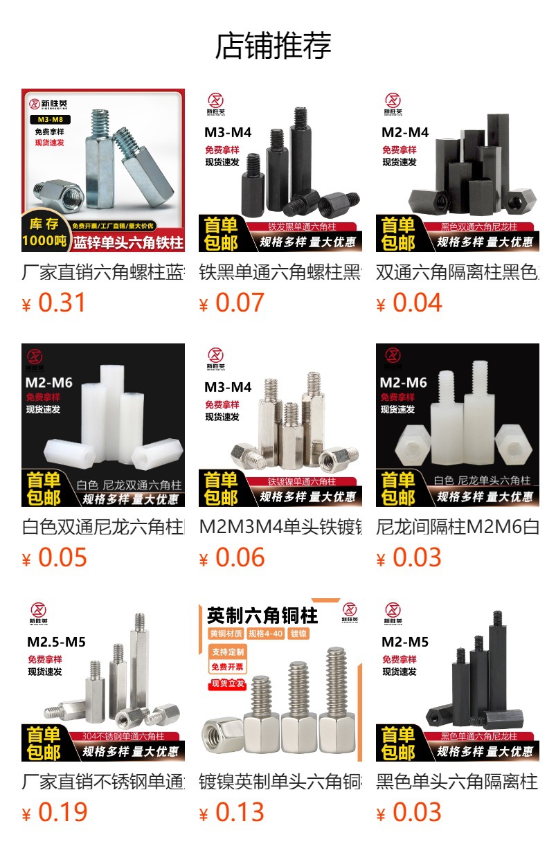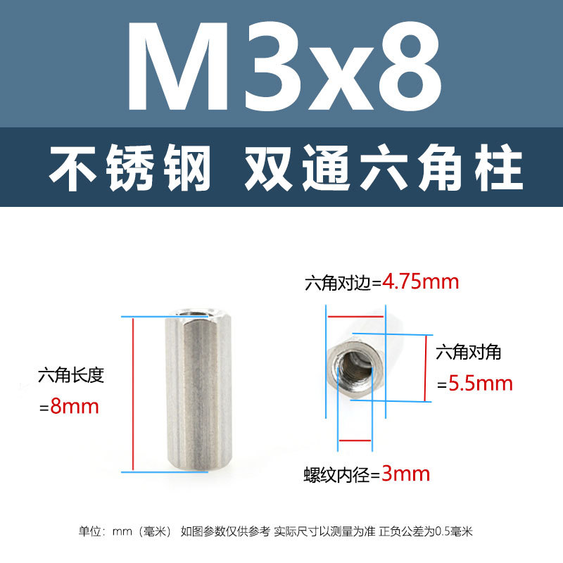 • M3*8(304 이중 통과 육각형 기둥)