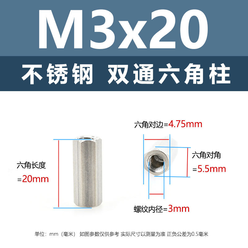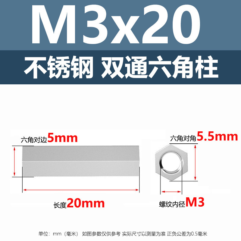 • M3*20(304 이중 통과 육각형 기둥)