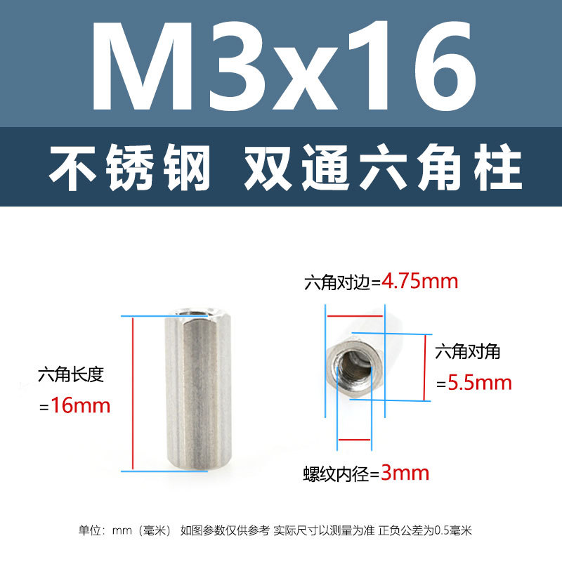 • M3*16(304 이중 통과 육각형 기둥)
