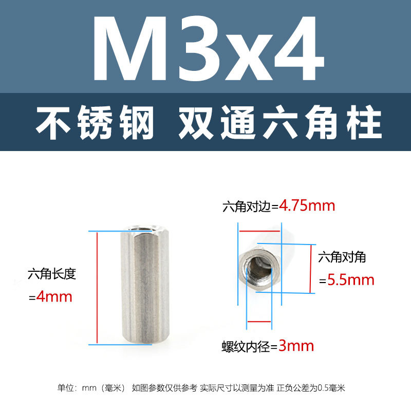 • M4*50(304 이중 통과 육각형 기둥)