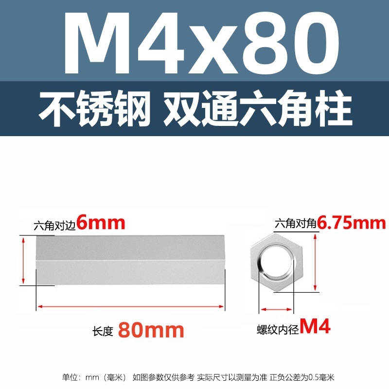• M4*80(304 이중 통과 육각형 기둥)