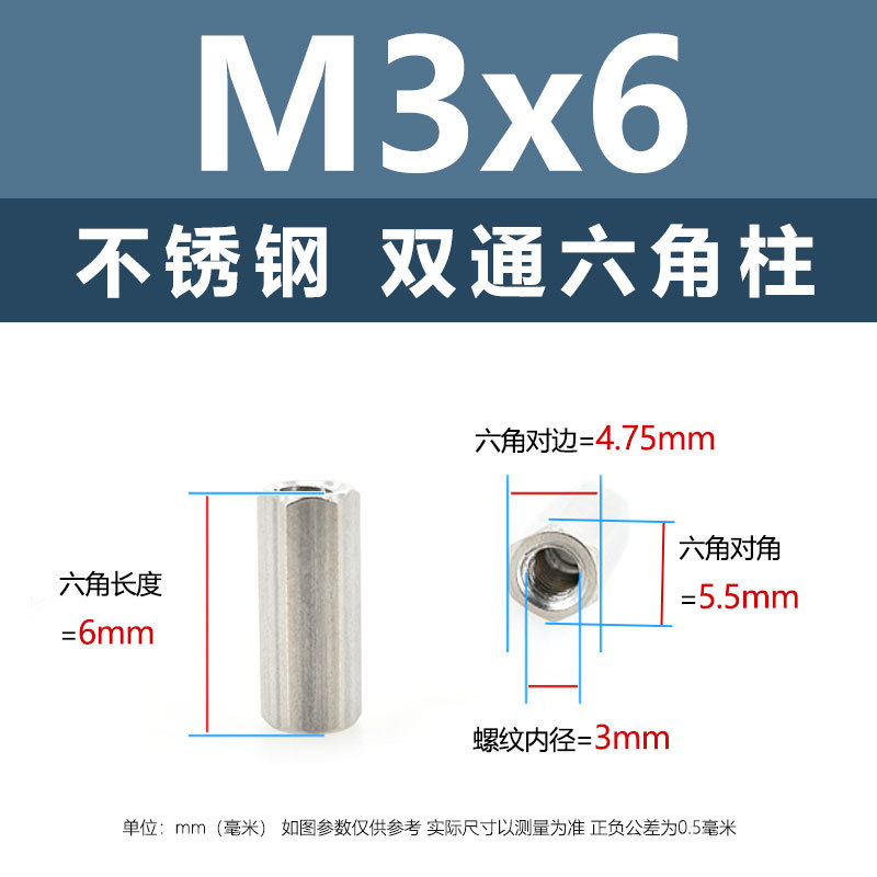 • M6*50(304 이중 통과 육각형 기둥)