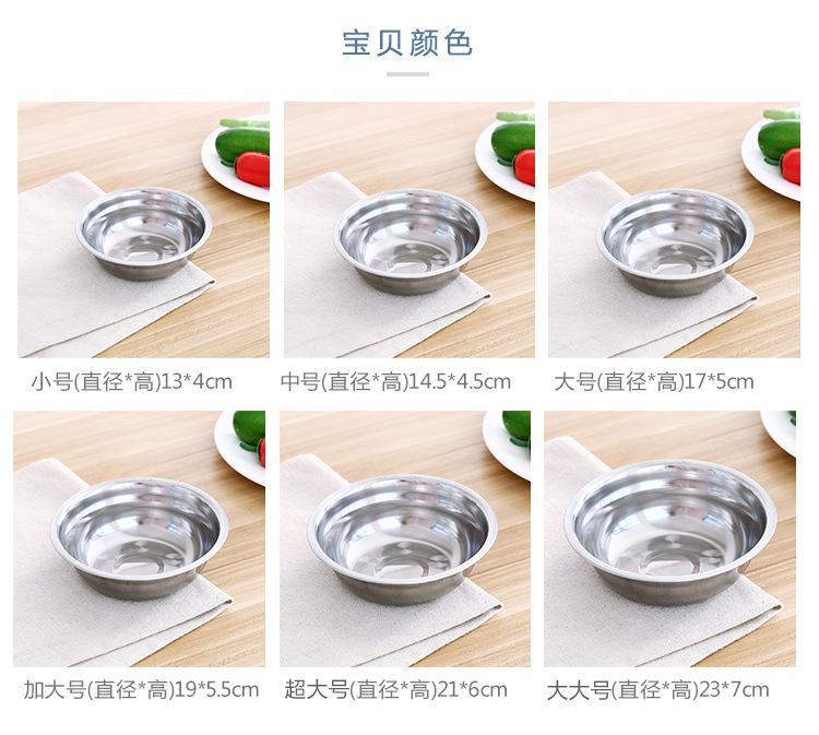 가정용 스테인레스 스틸 수프 분지 소형 대형 주방 라운드 두껍고 깊은 상업용 분지 야채 세면대 수프 먹는 분지