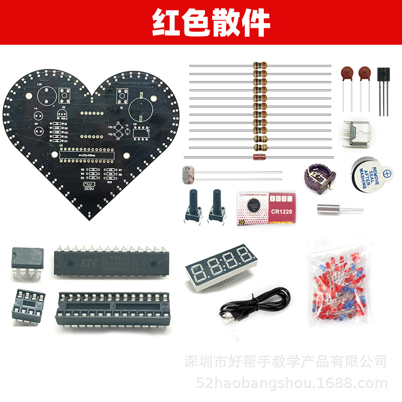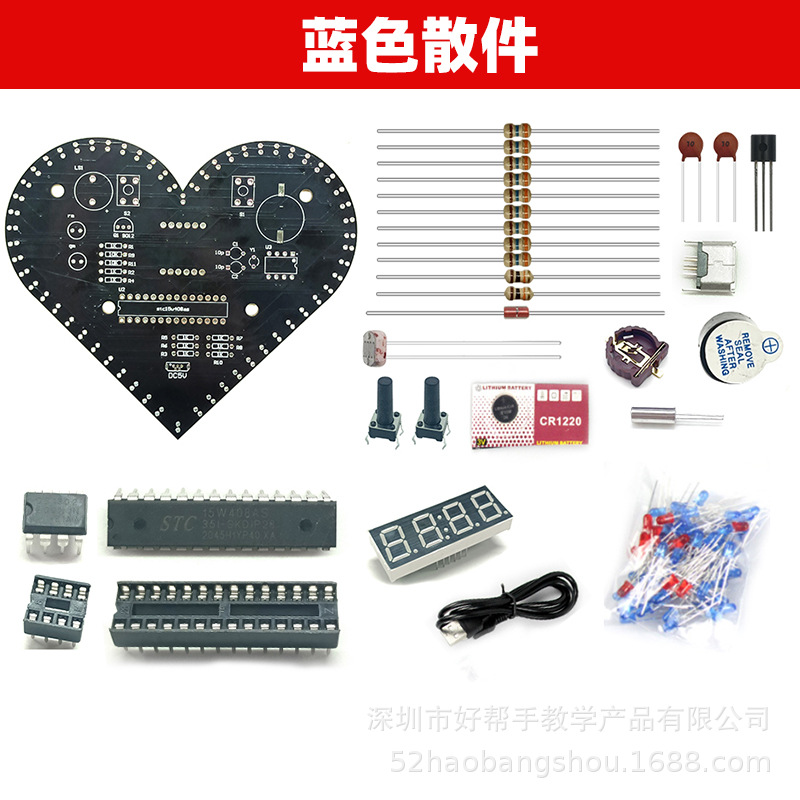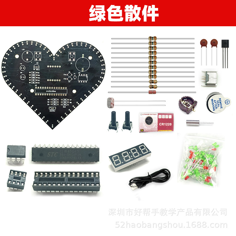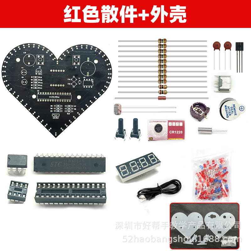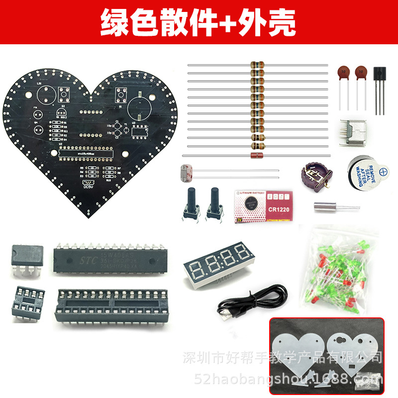 디지털 전자 시계 diy 제작 키트 크리에이티브 하트 모양의 시계 러닝 워터 램프 회로 기판 용접 운동 예비 부품스토어 가기