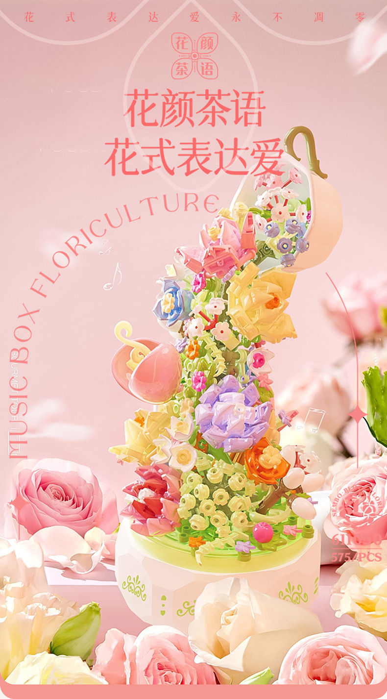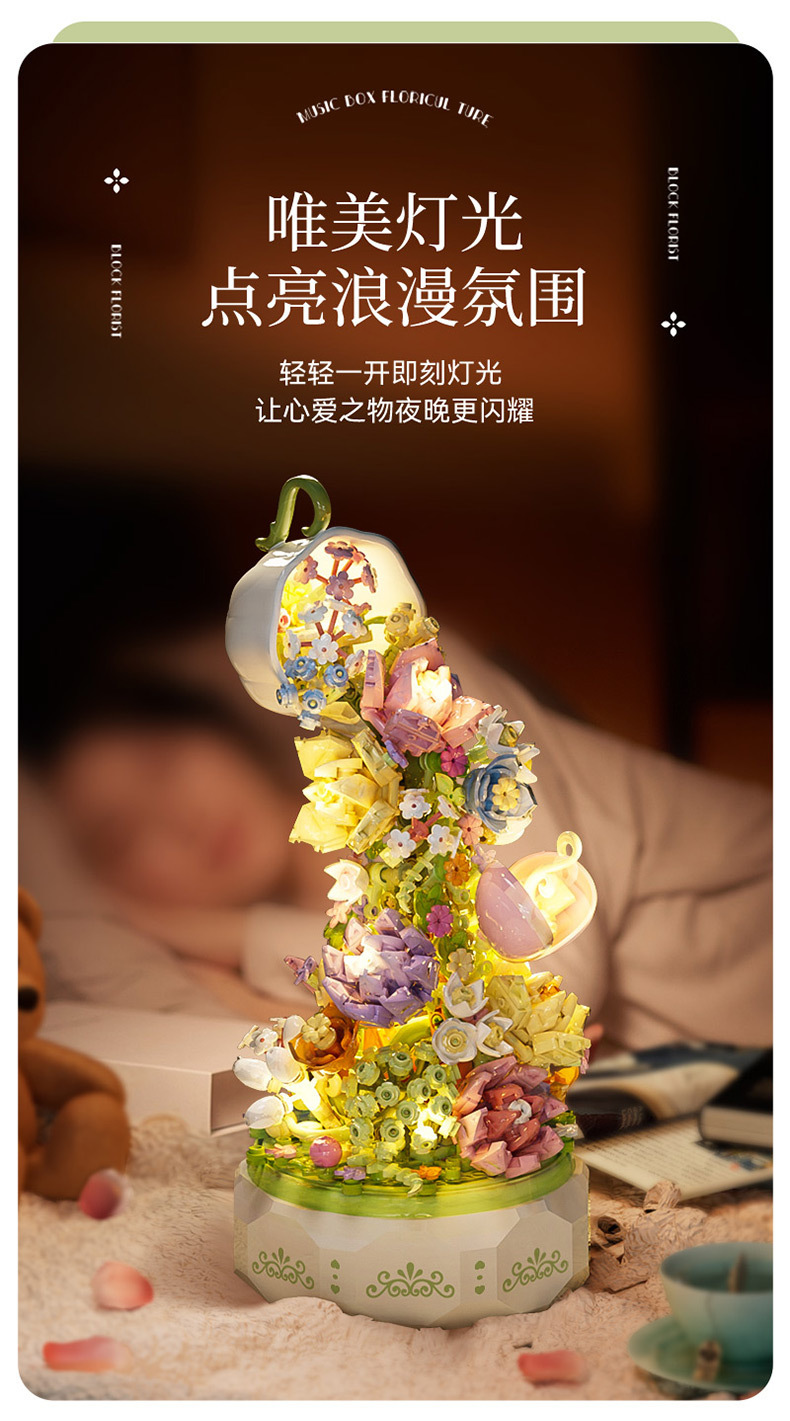 레고 블록과 호환 플라워 하우스 플라워 티 언어 라이트 뮤직 박스 발렌타인 데이 조립 선물 교육용 어린이 장난감스토어 가기