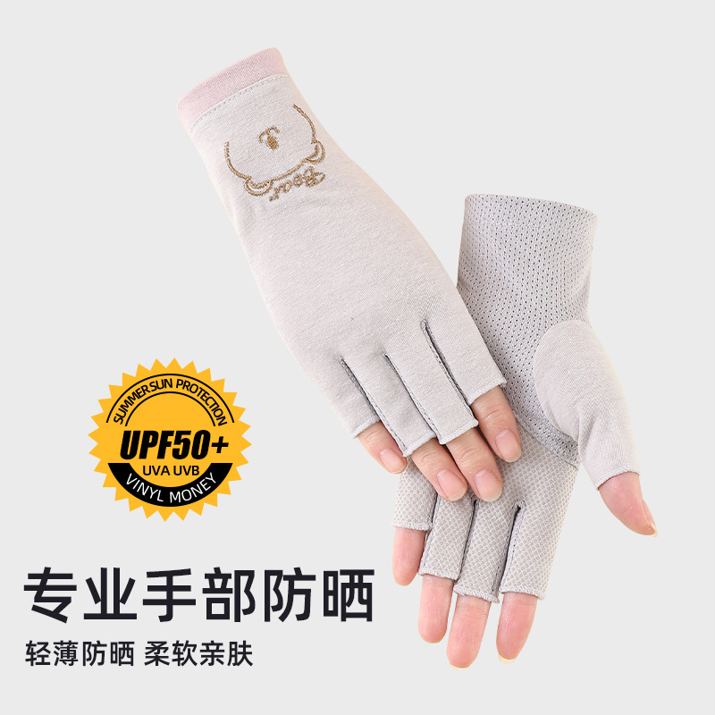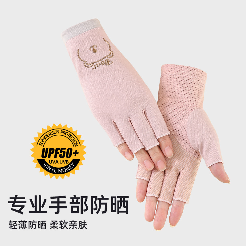 여름 야외 소녀 자외선 방지 면 장갑 미끄럼 방지 터치 스크린 작업 봄과 여름 숙녀 승마 태양 보호 장갑